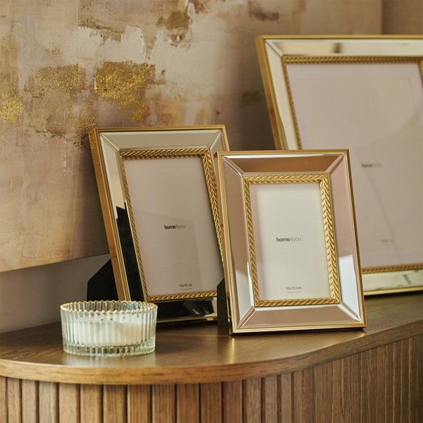 Tworzy ciepły, domowy klimat i sprawia, że salon staje się bardzo osobisty. To dekoracje, które opowiadają historię i budują więź z przestrzenią. - Lustro w ozdobnej ramie