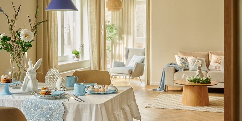 - Kolorystyka wnętrza – pastelowe odcienie zieleni, żółci i różu doskonale wpisują się w wielkanocny klimat.