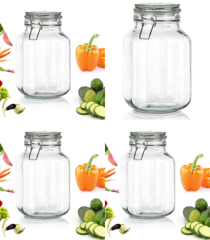 4x Słoik hermetyczny z klipsem szklany na przetwory ogórki weki 2 L soki