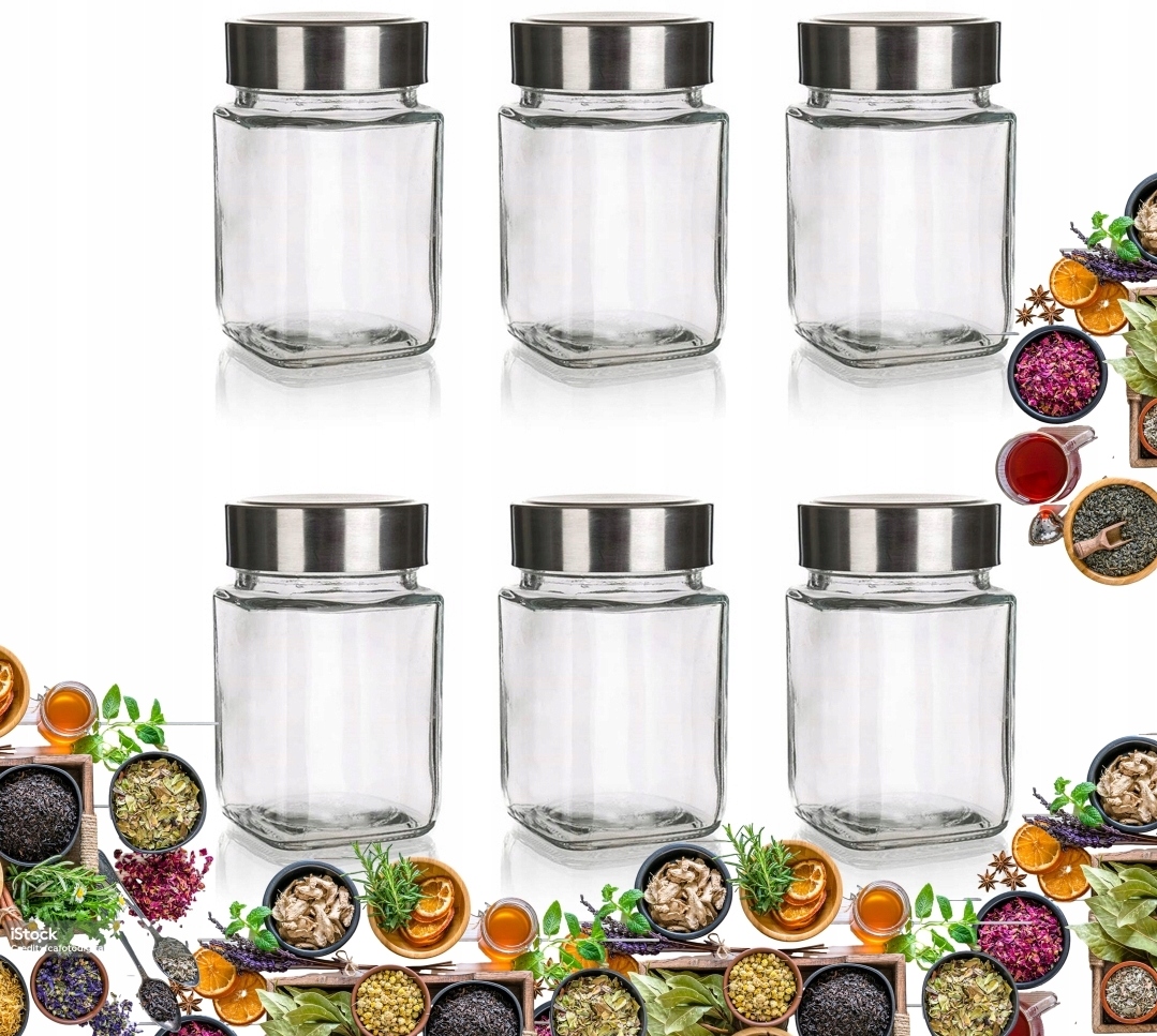6x POJEMNIK SZKLANY SŁOIK MAŁY NA przyprawy 300 ml do szafki półki kuchni