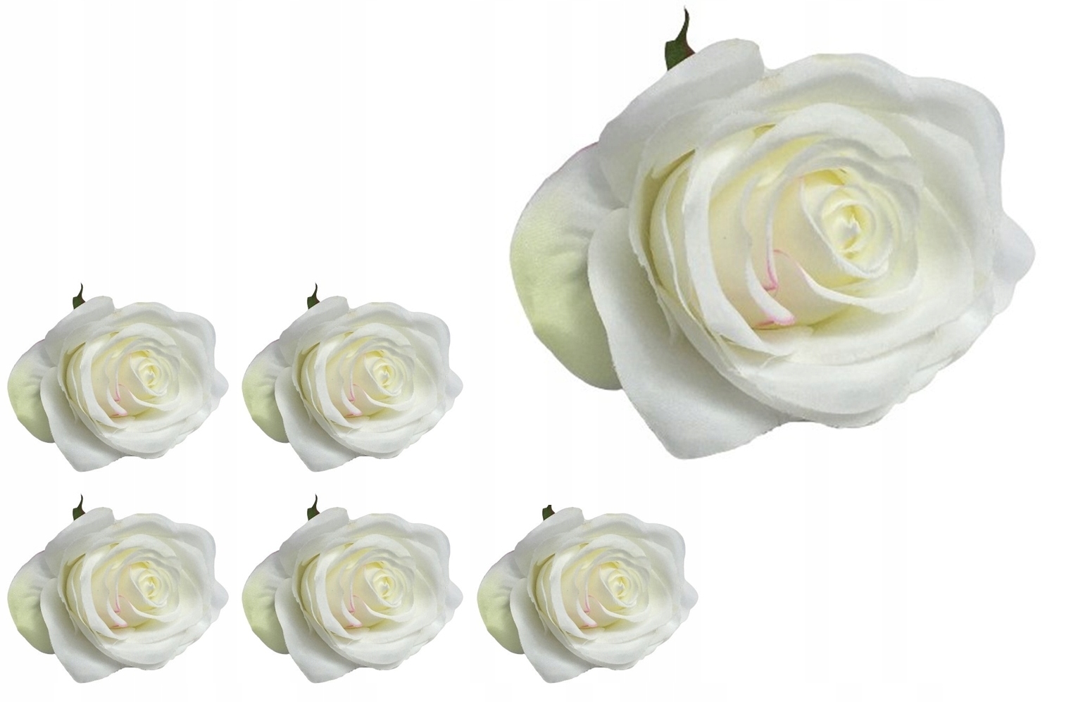 6x RÓŻA SZTUCZNA główka kwiatowa wyrobowa STROIKA biała ładna kompozycja