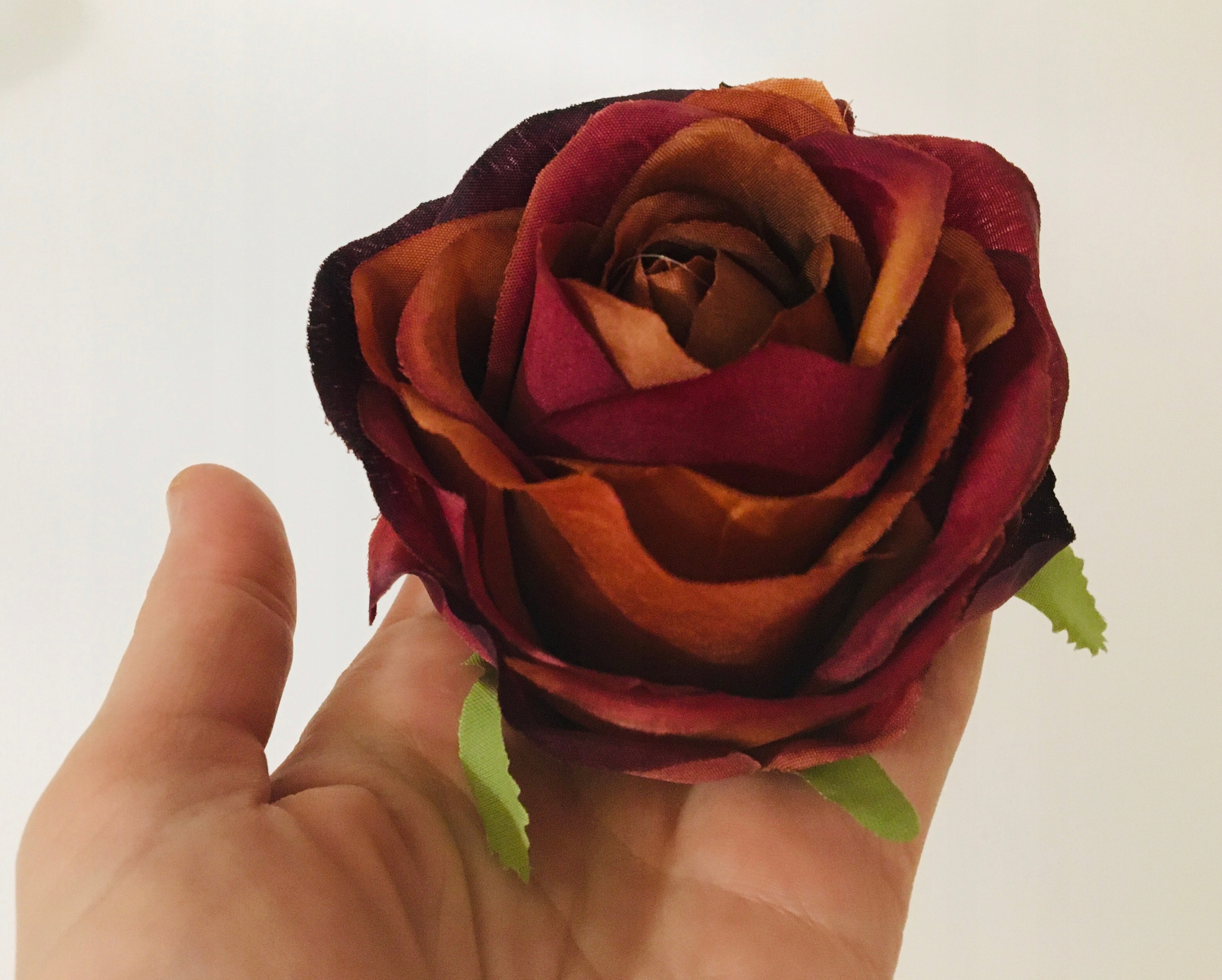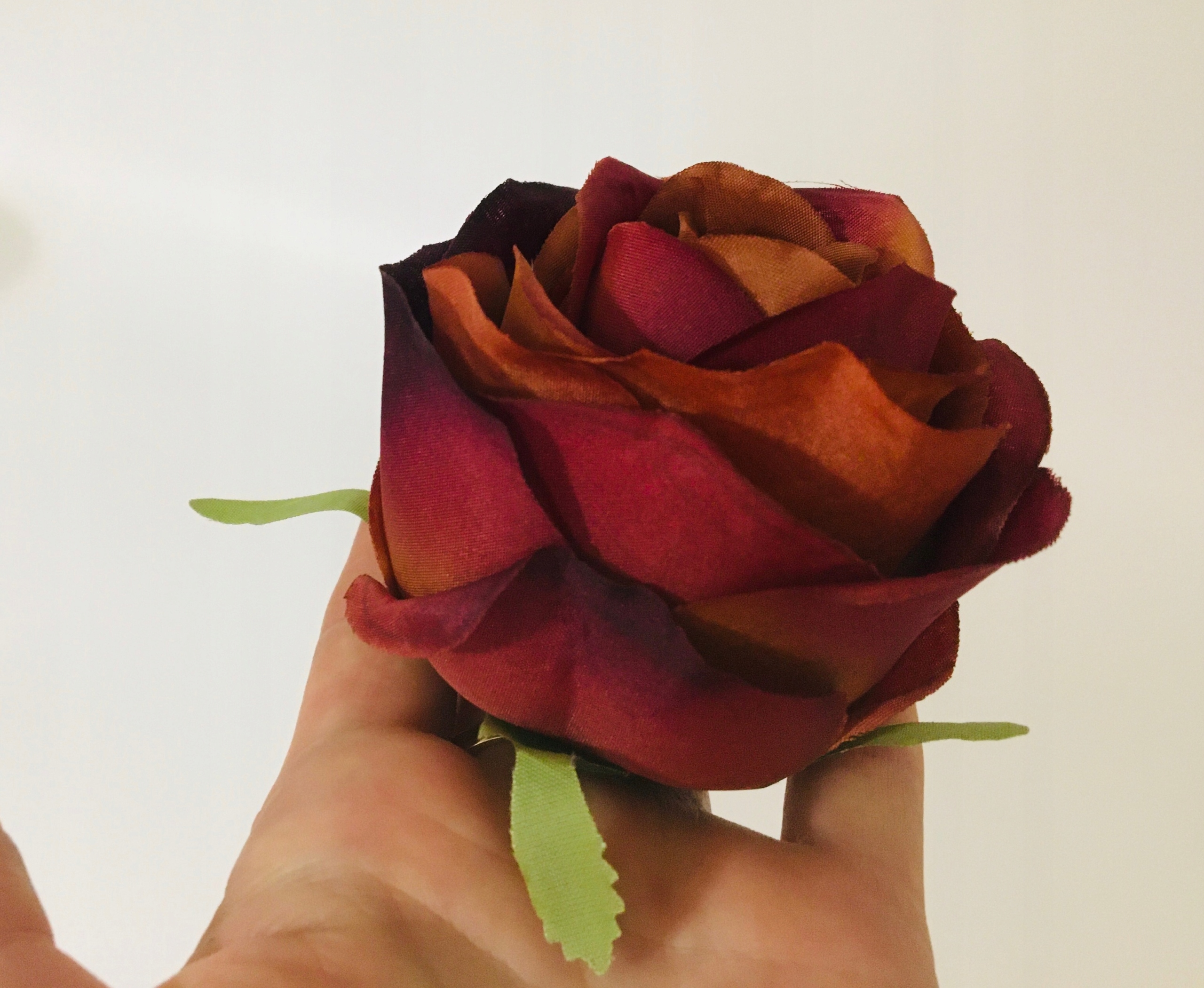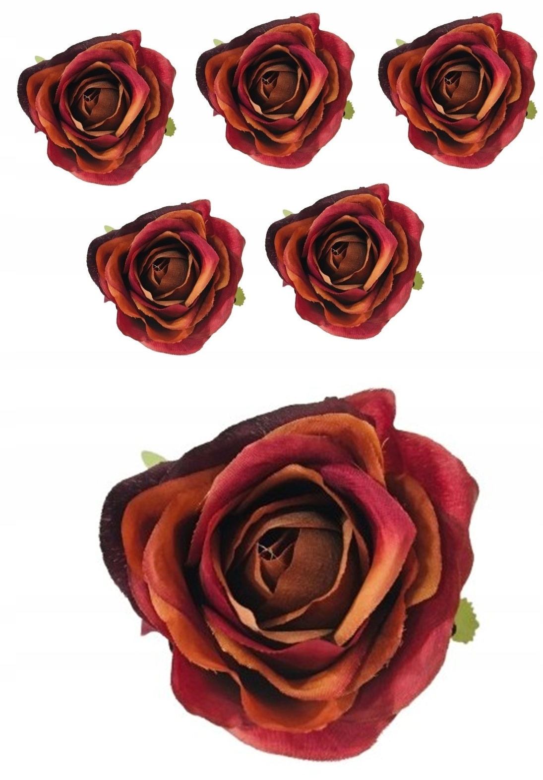 6x Róża sztuczna wyrobowa do wiązanek główka pąk sztuczne kwiaty trzykolor