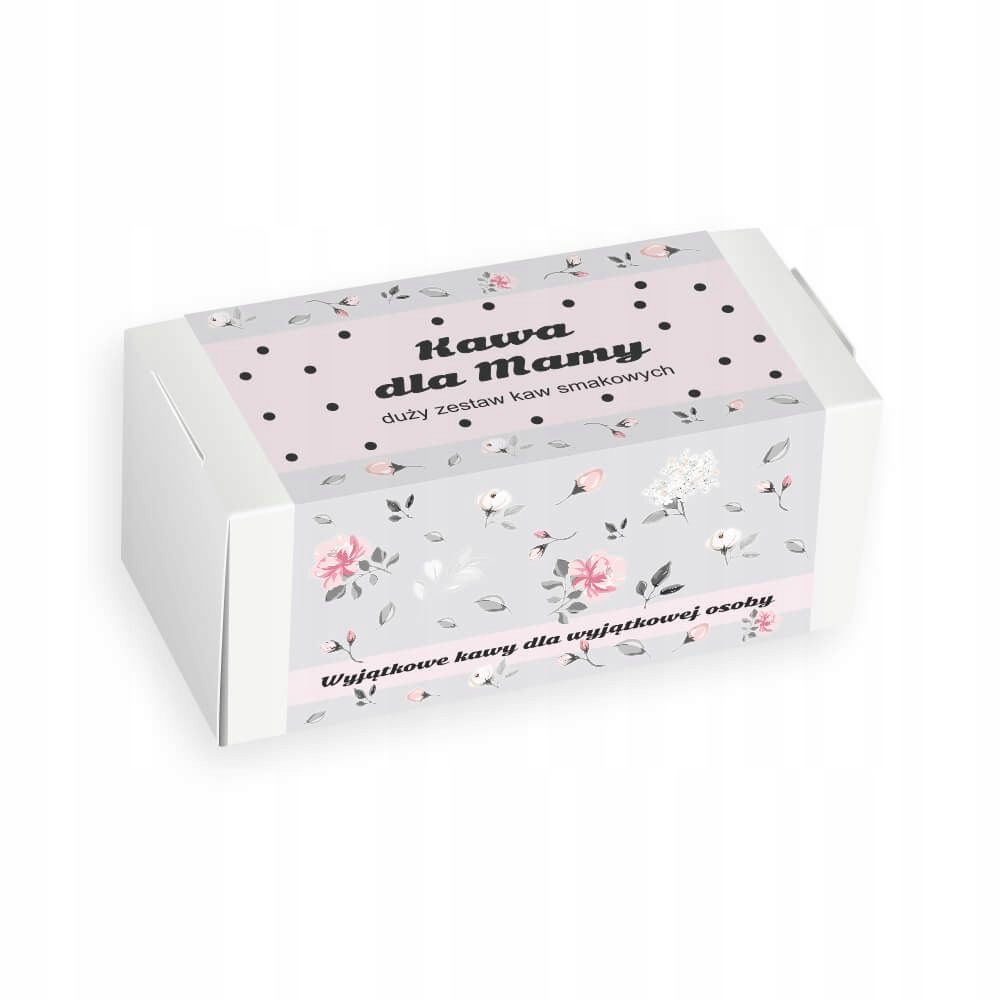 • Kawa dla mamy w kwiecistym pudełku: 20 saszetek – 20szt x 10g z różnymi smakami kawy sypanej