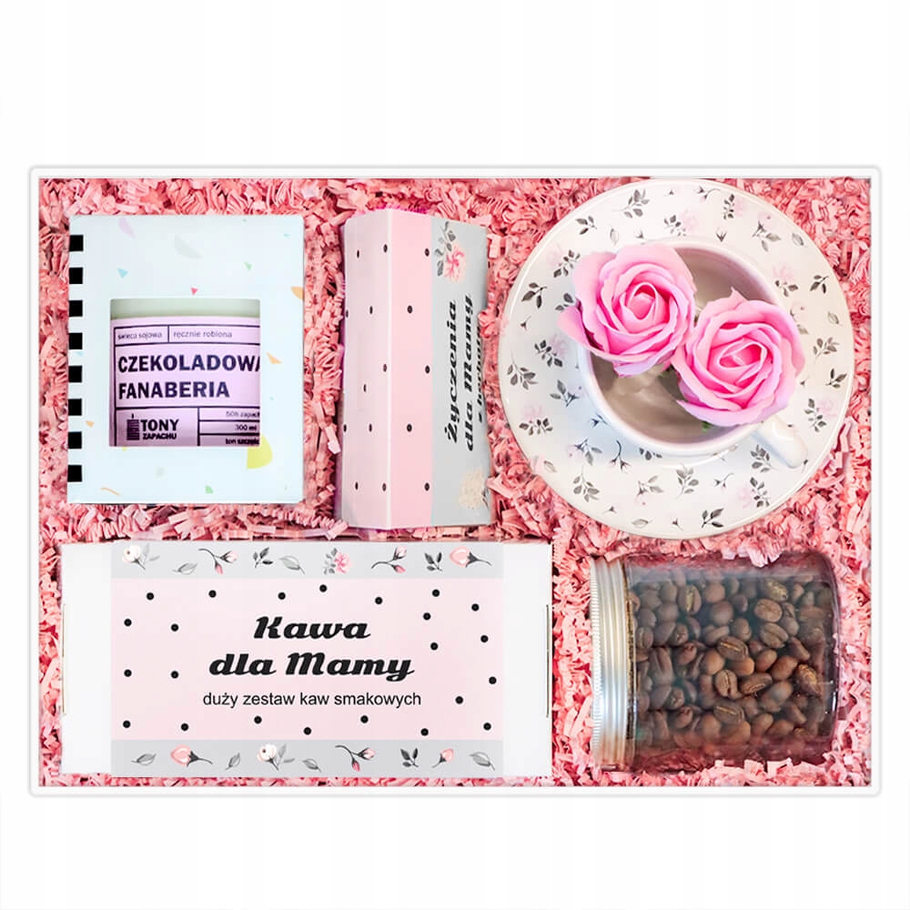 BOX dla MAMY wyjątkowy prezent z kawami aromatyzowanymi świecą filiżanką