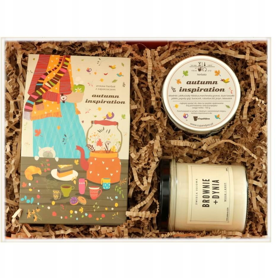 Jesień wydaje Ci się być szara i ponura? Nie z Jesiennym Boxem AUTUMN INSPIRATION! Kolorowa mieszanka rozgrzewających herbat, uroczy zaparzacz i pachnąca świeca sojowa nastroi Cię pozytywnie do działania w trakcie trwającego przesilenia. Odczaruj tę klimatyczną porę roku z kubkiem gorącej, aromatycznej herbaty i zaczerpnij garść inspiracji. Niech tegoroczna jesień będzie wyjątkowo barwna i radosna!