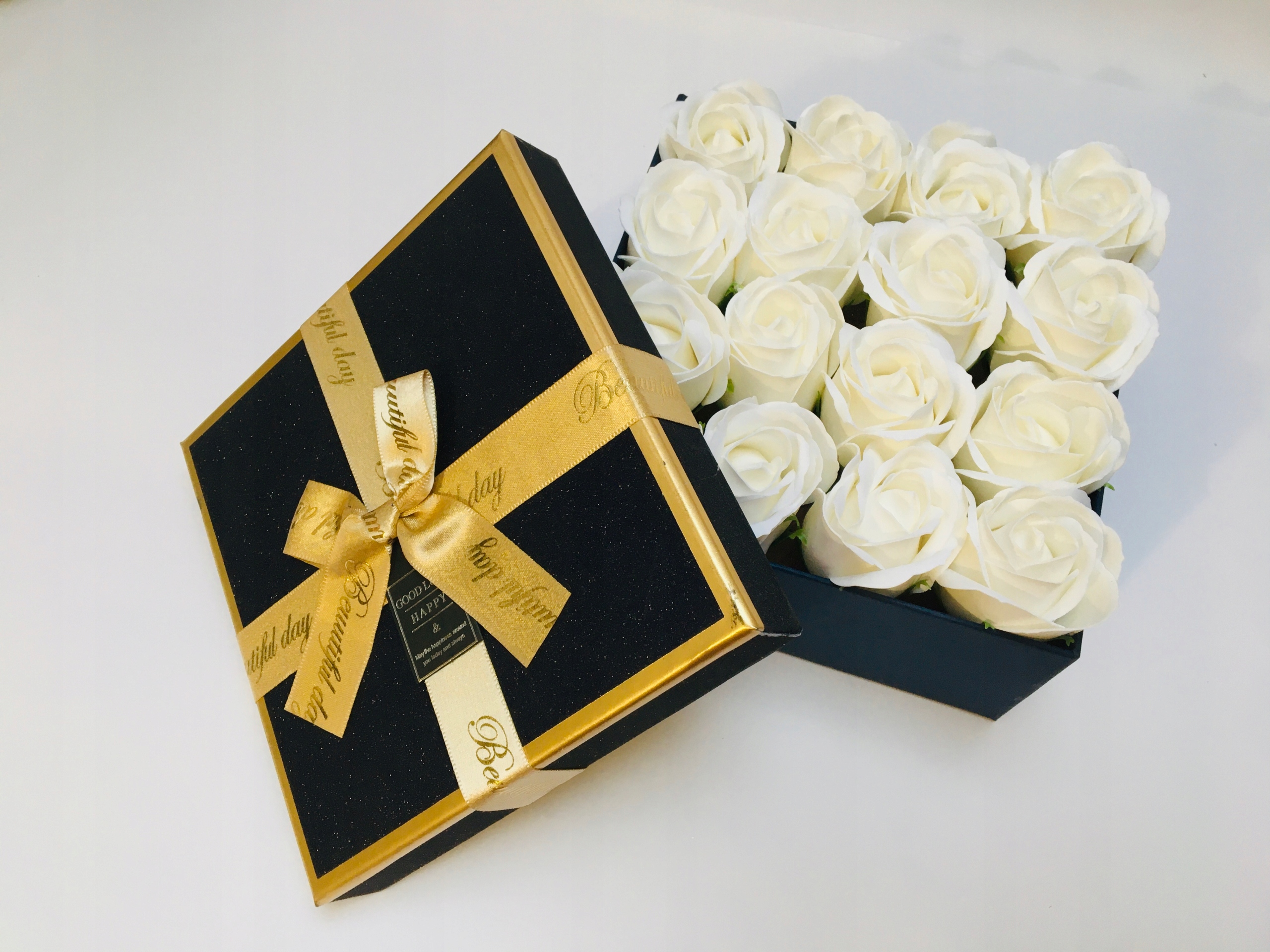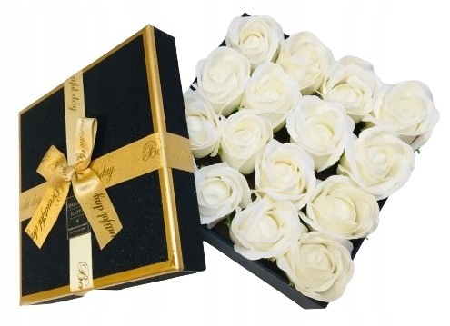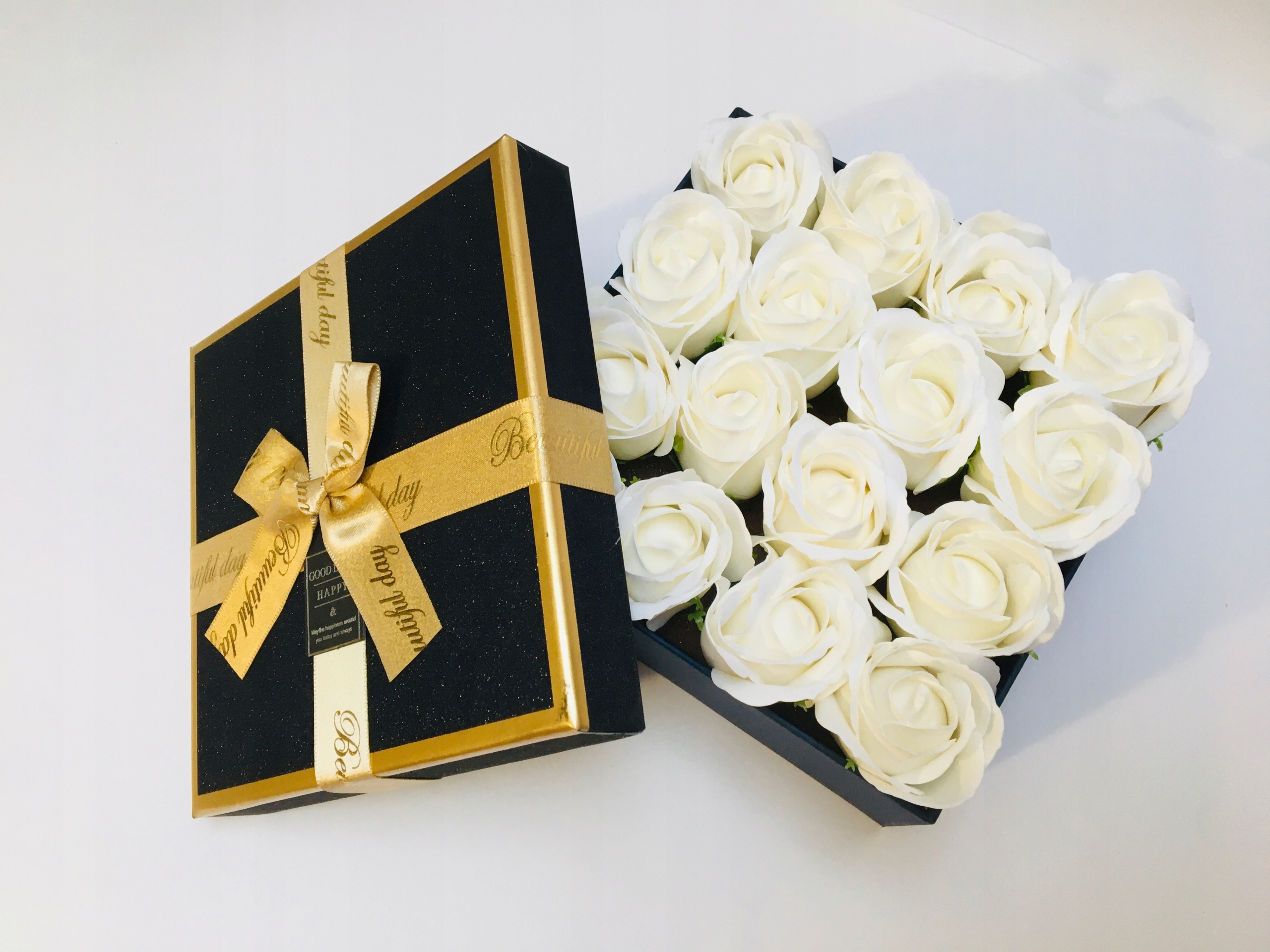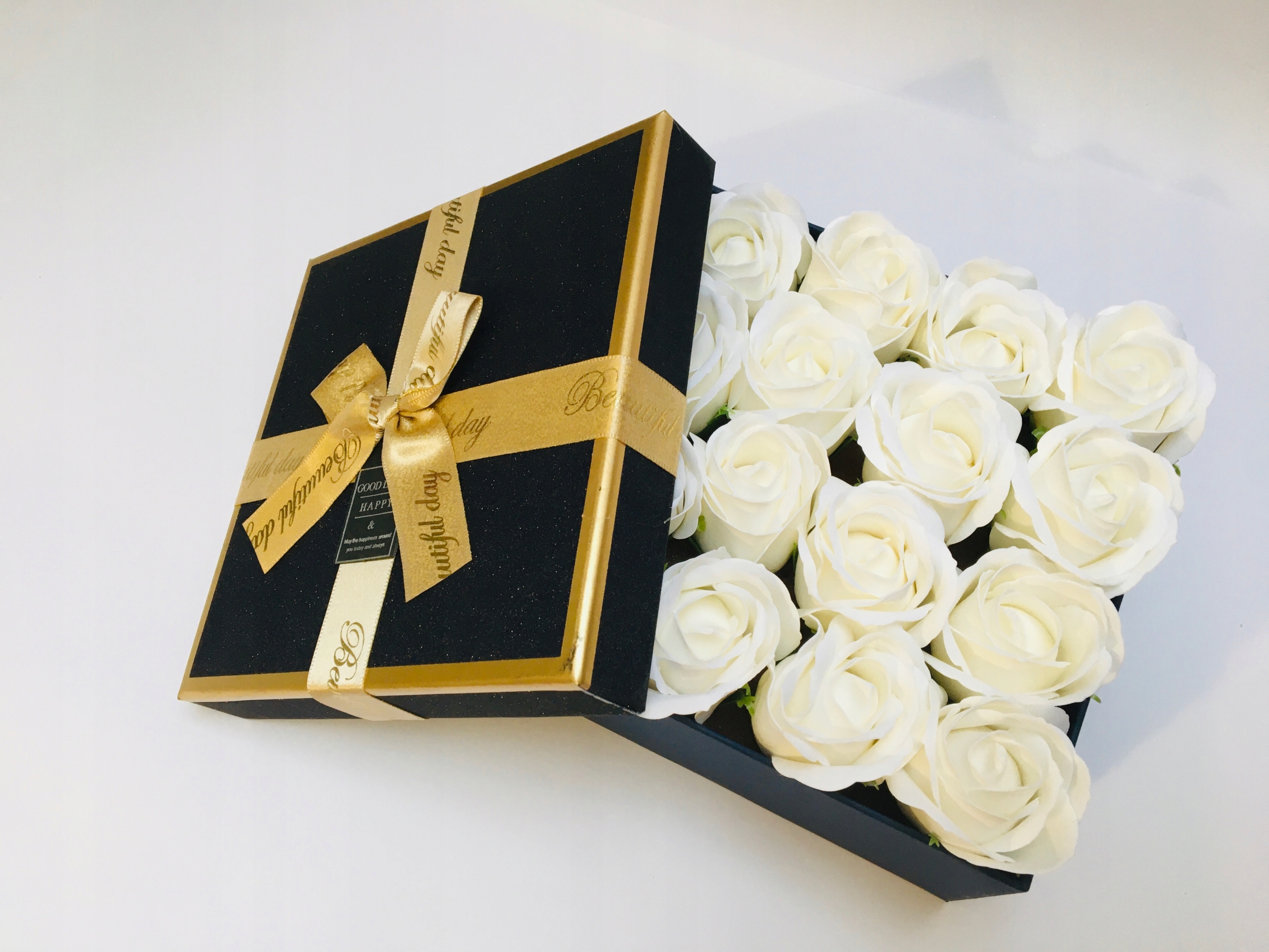 BOX PACHNĄCE białe RÓŻE MYDLANE GOTOWY PREZENT upominek urodziny ślub kwiat