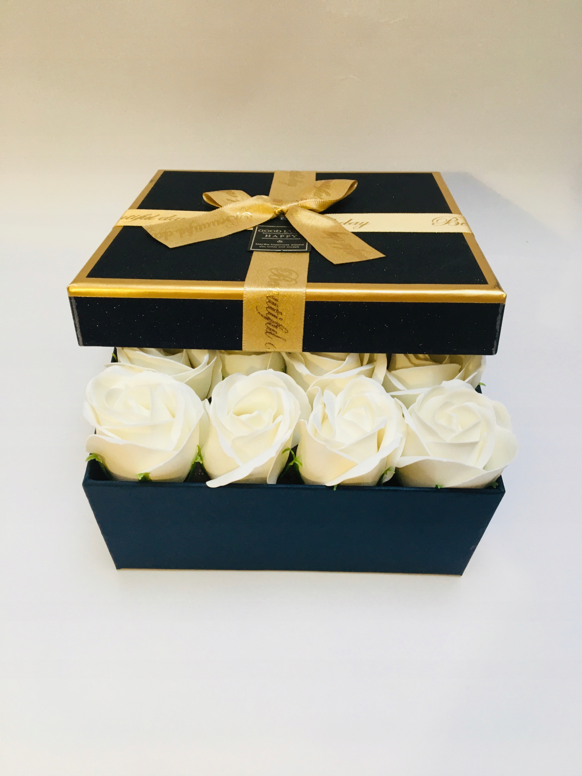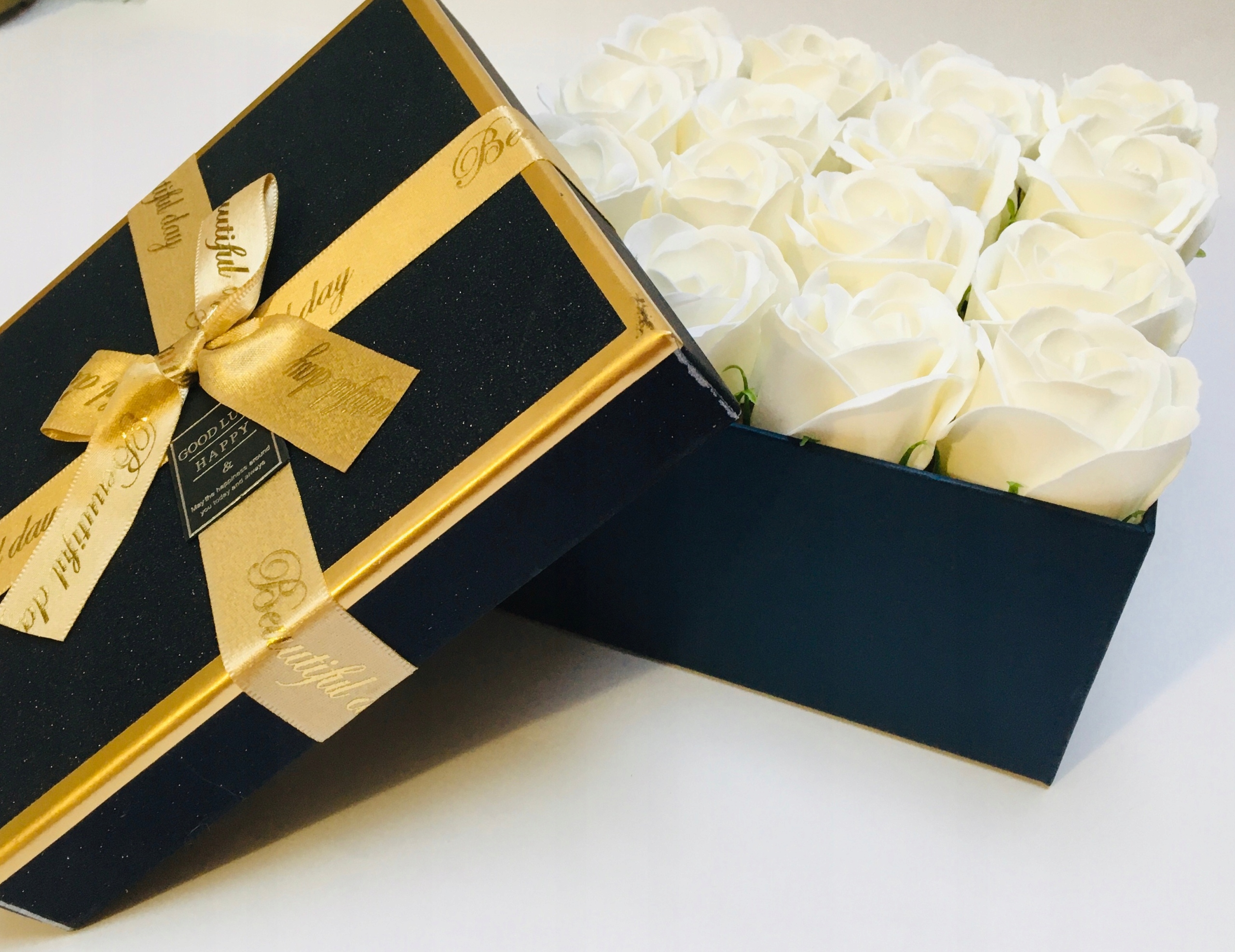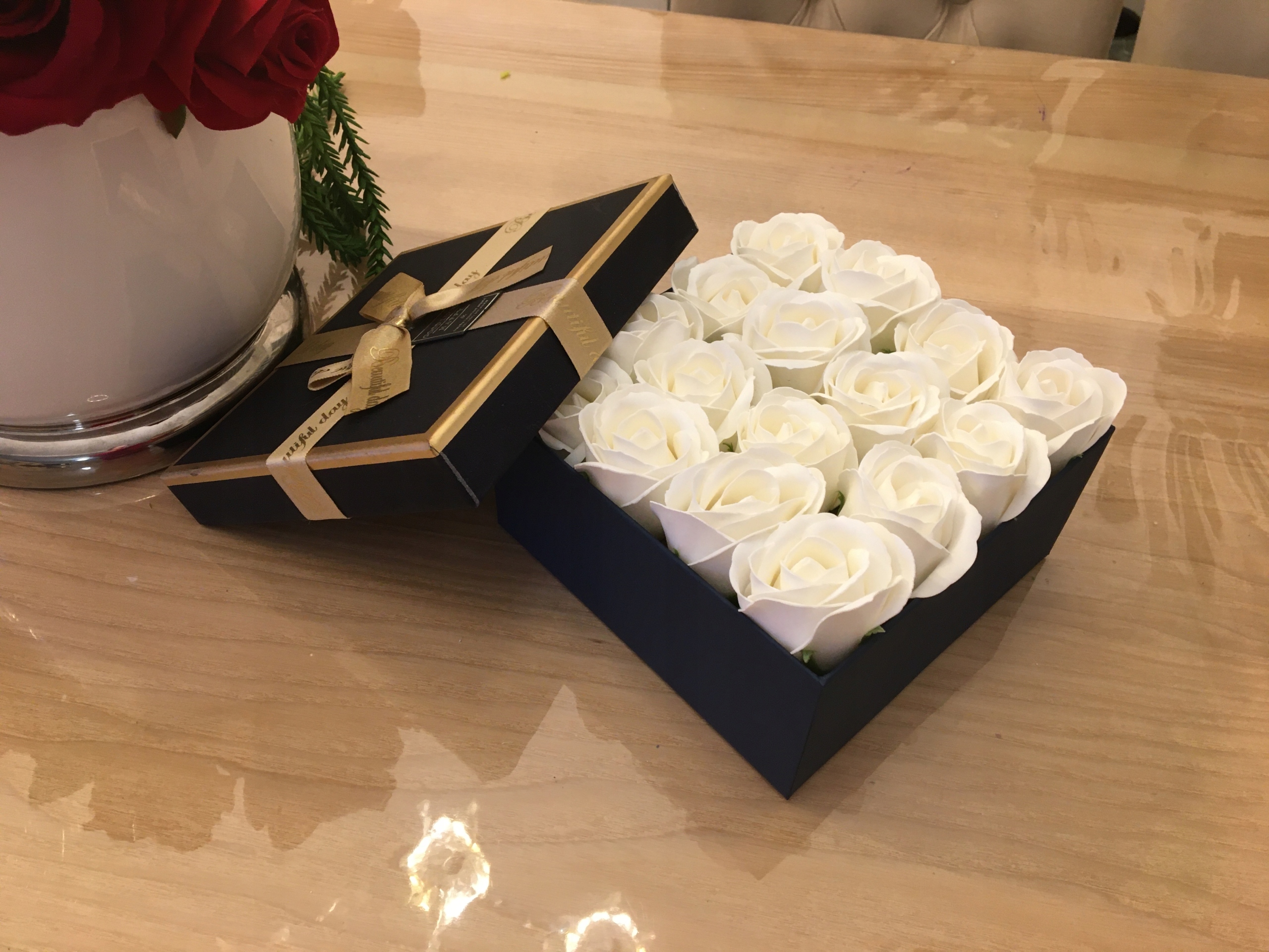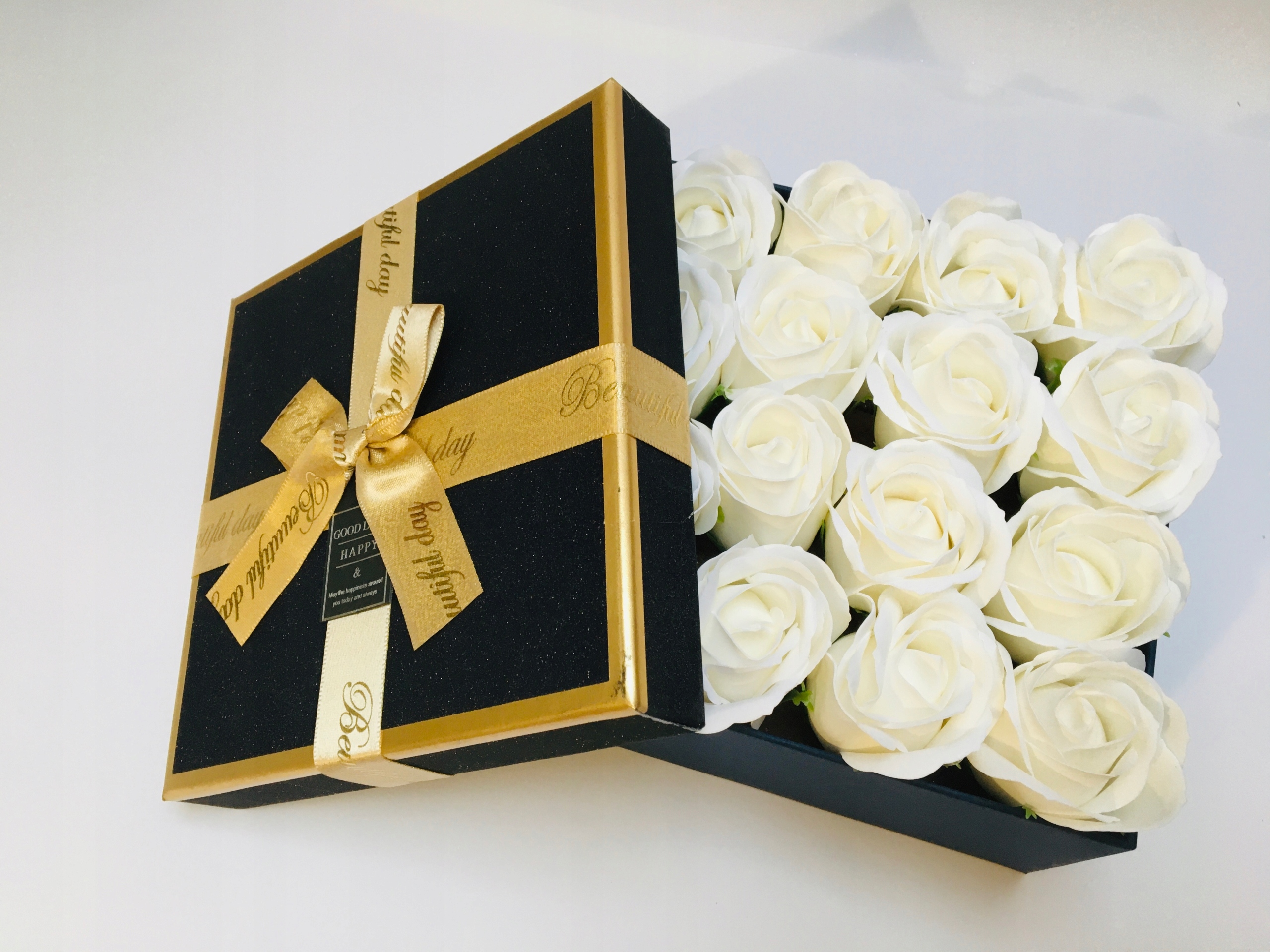 BOX PACHNĄCE białe RÓŻE MYDLANE GOTOWY PREZENT upominek urodziny ślub kwiat