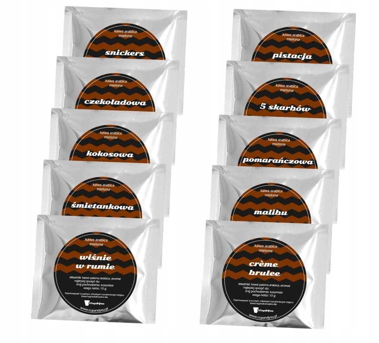 ⭐️ W zestawie znajdziesz 10 różnych smaków kawy: