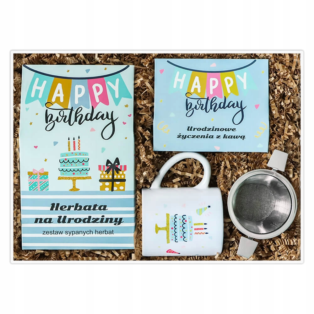 Birthdaybox WYJĄTKOWY DZIEŃ będzie znakomitym rozwiązaniem! Herbata, kawa, zaparzacz, kubek to idealna kompozycja prezentowa, która z pewnością sprawi każdemu wiele radości.