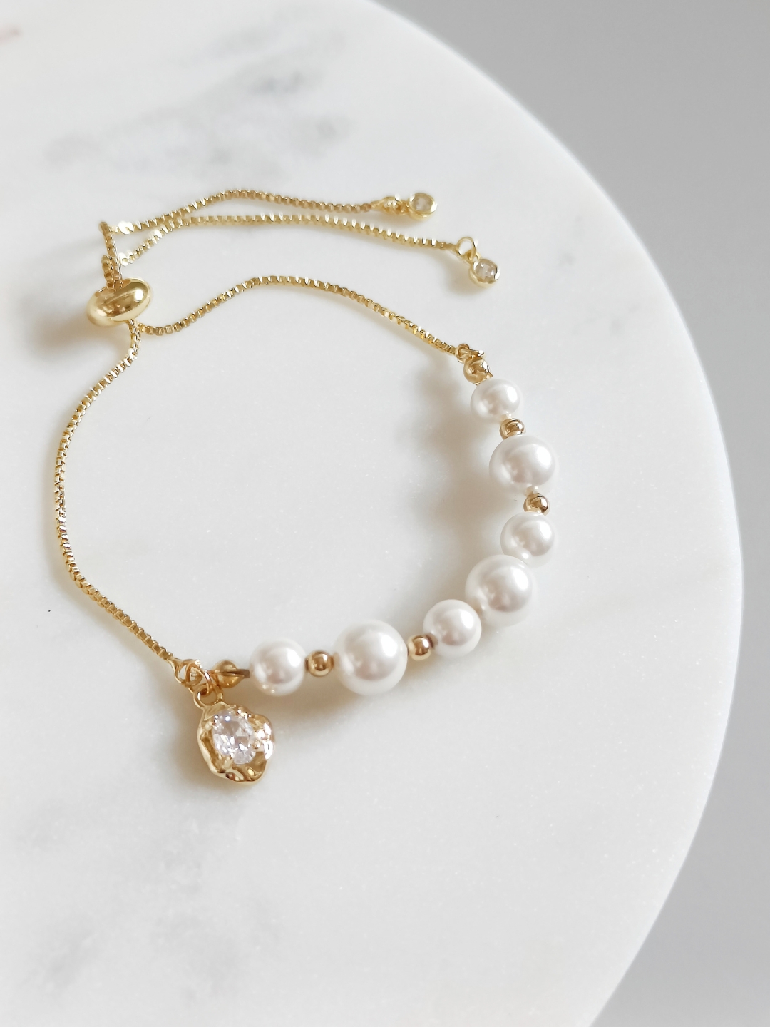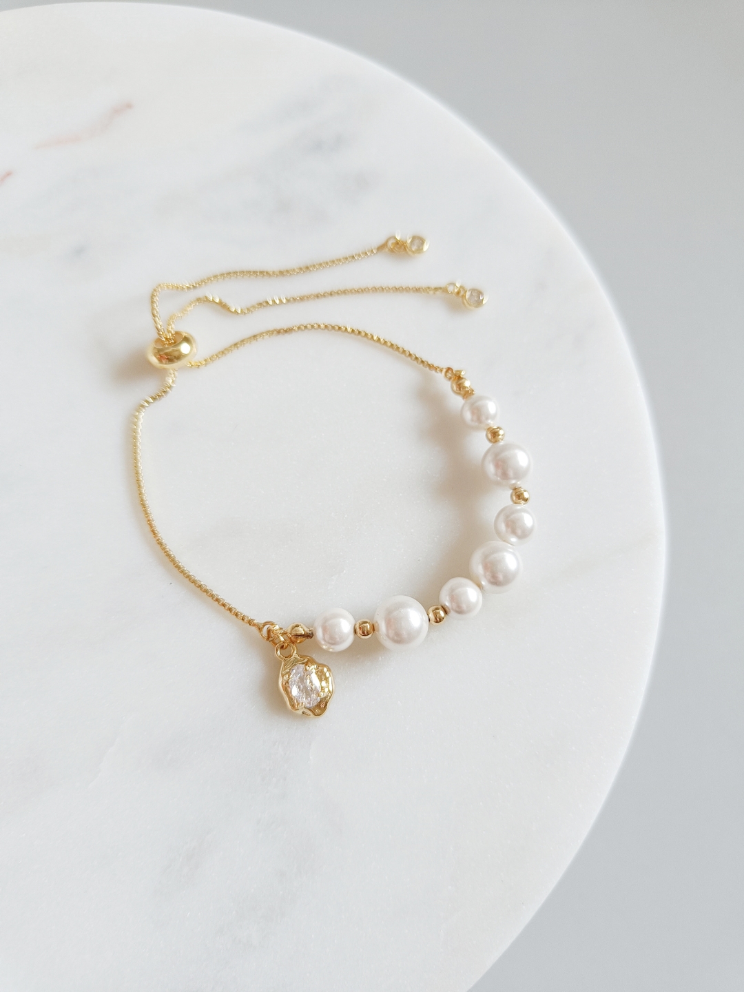 Bransoletka robiona z perłami PERŁOWA zawieszka regulowana złota efekt