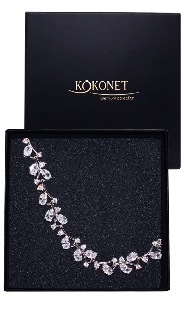 Bransoletka ślubna kwiatowa SREBRNA motyw ROŚLINNY ślub dla PANNY MŁODEJ