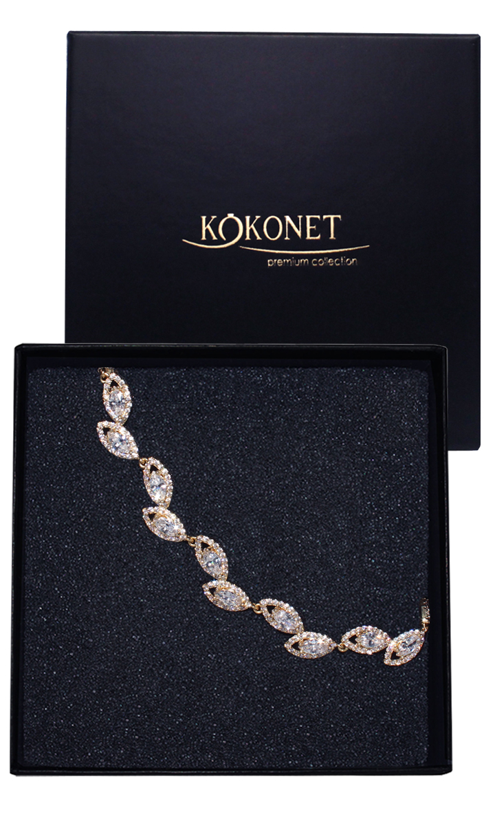 Bransoletka Ślubna ZŁOTA Listki BOHO Cyrkonie Listek na zatrzask prezent