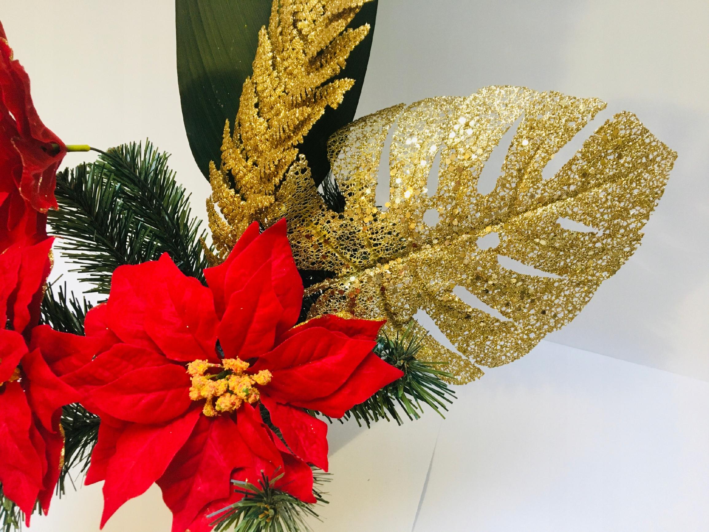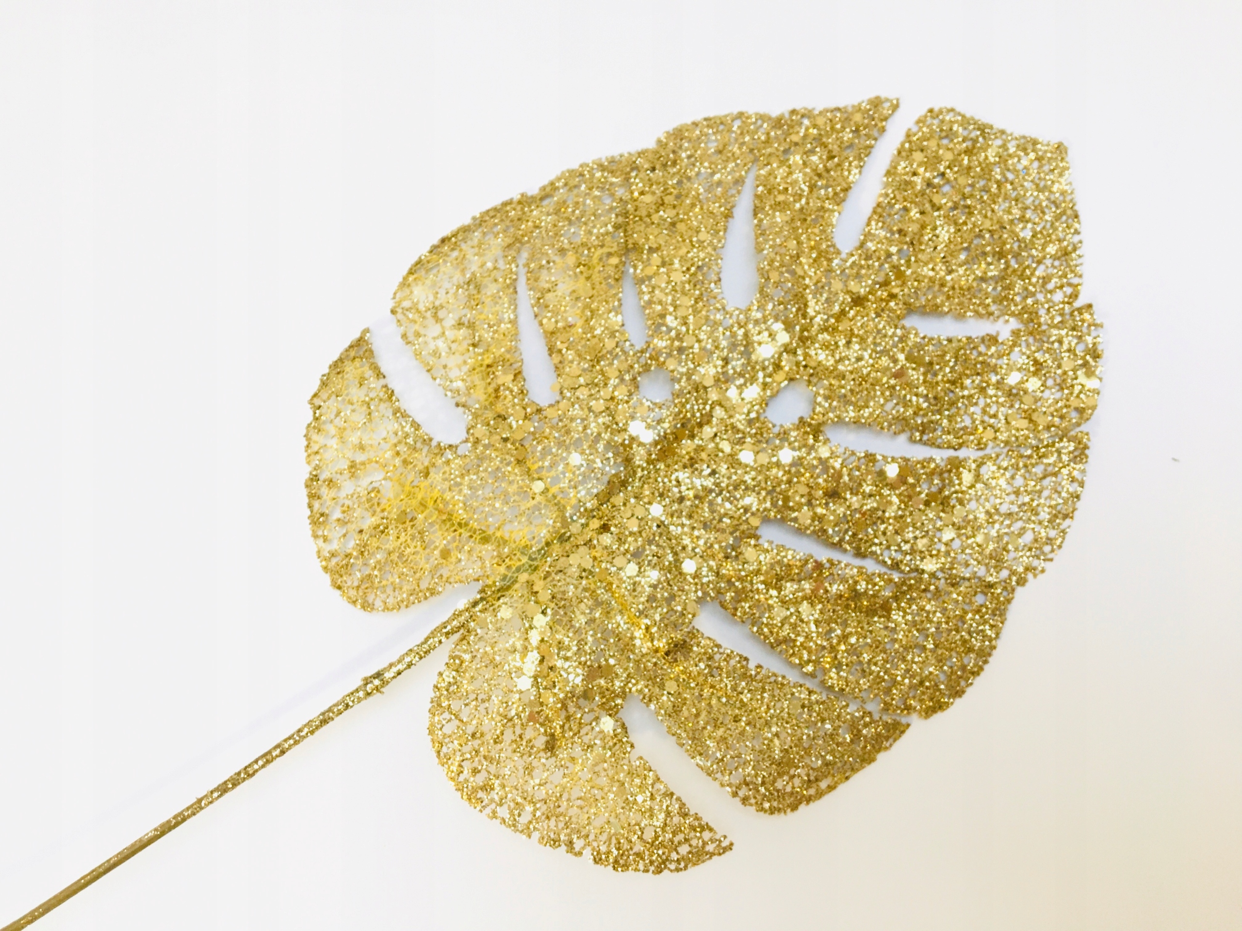 BROKATOWY LIŚĆ anturium ZŁOTY do bukietu dekoracji święta gwiazdka stroik