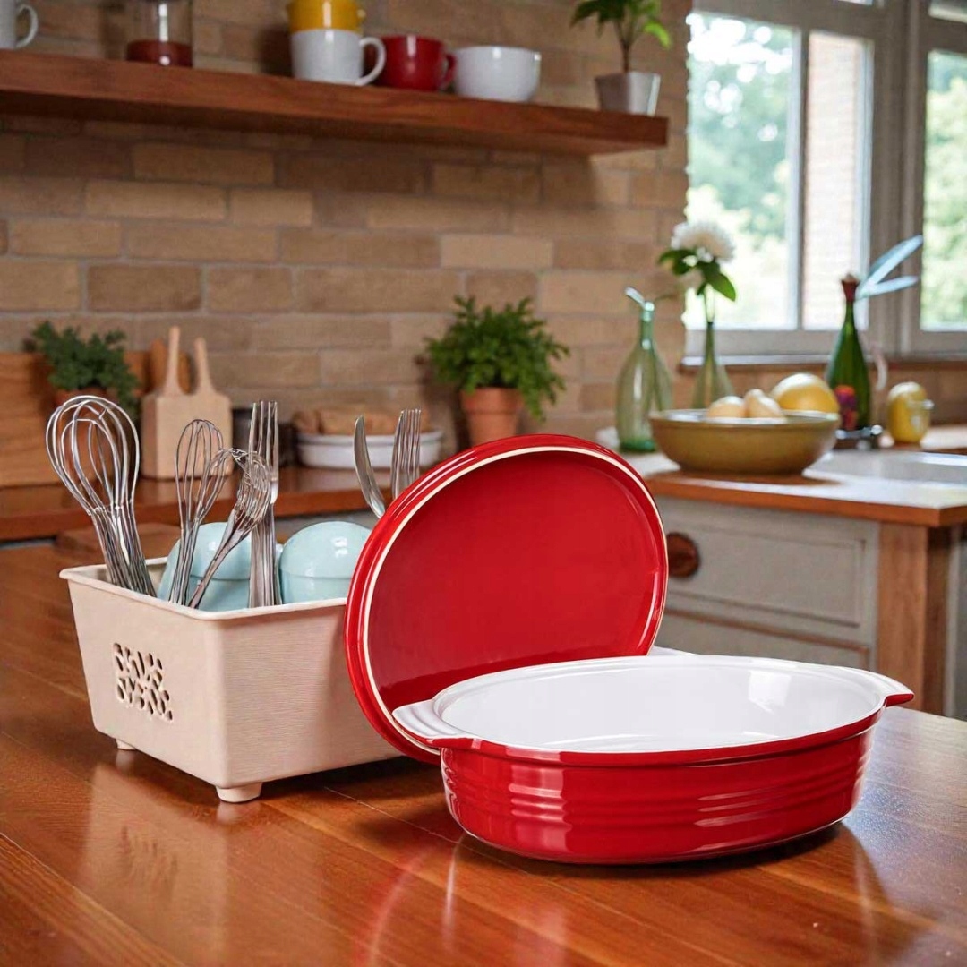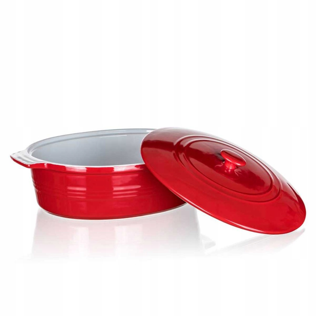 ⚜️⚜️⚜️ Brytfanna ceramiczna z pokrywą do zapiekania Culinaria Red– 3,6 L, czerwona, biała emalia