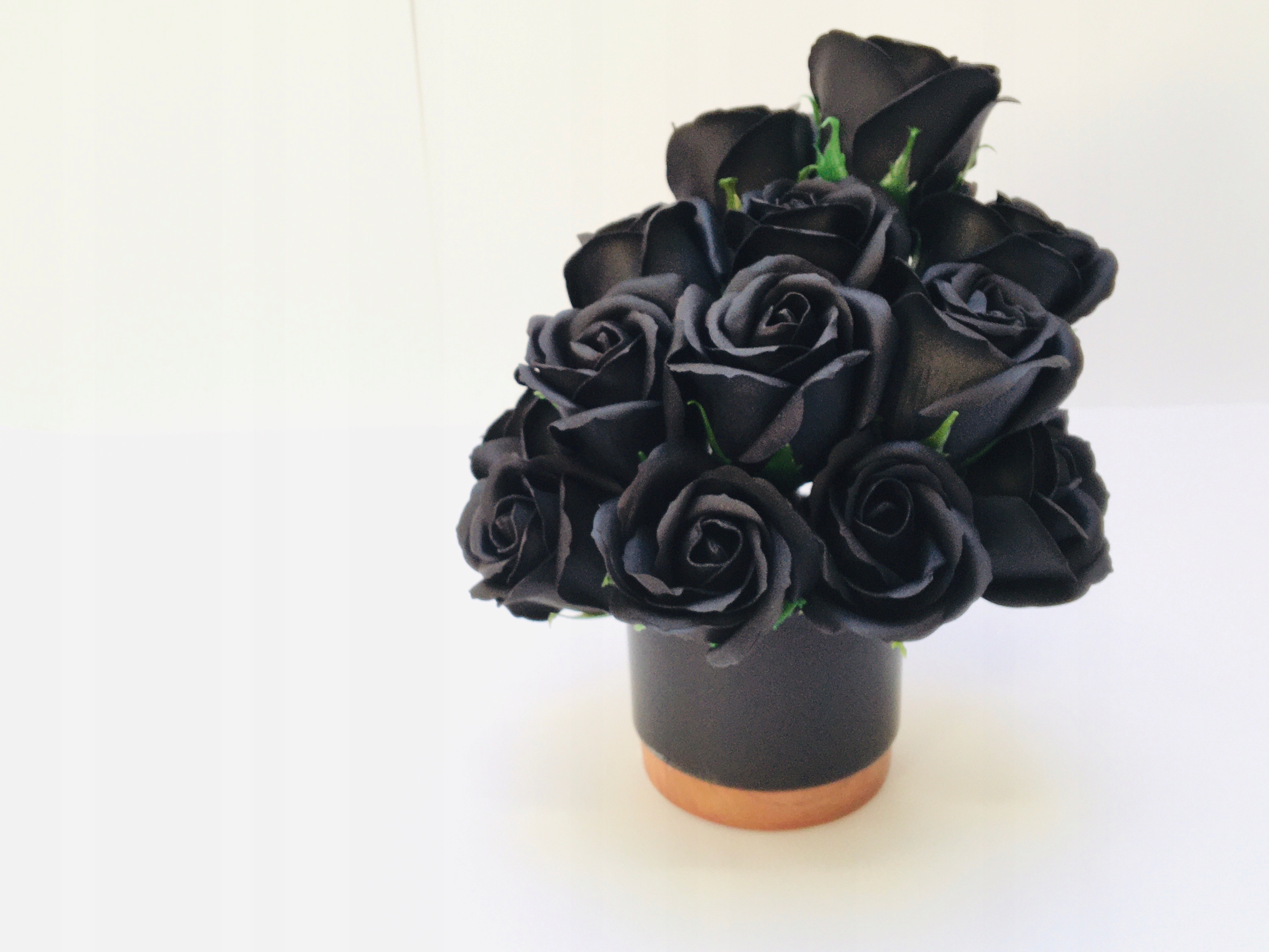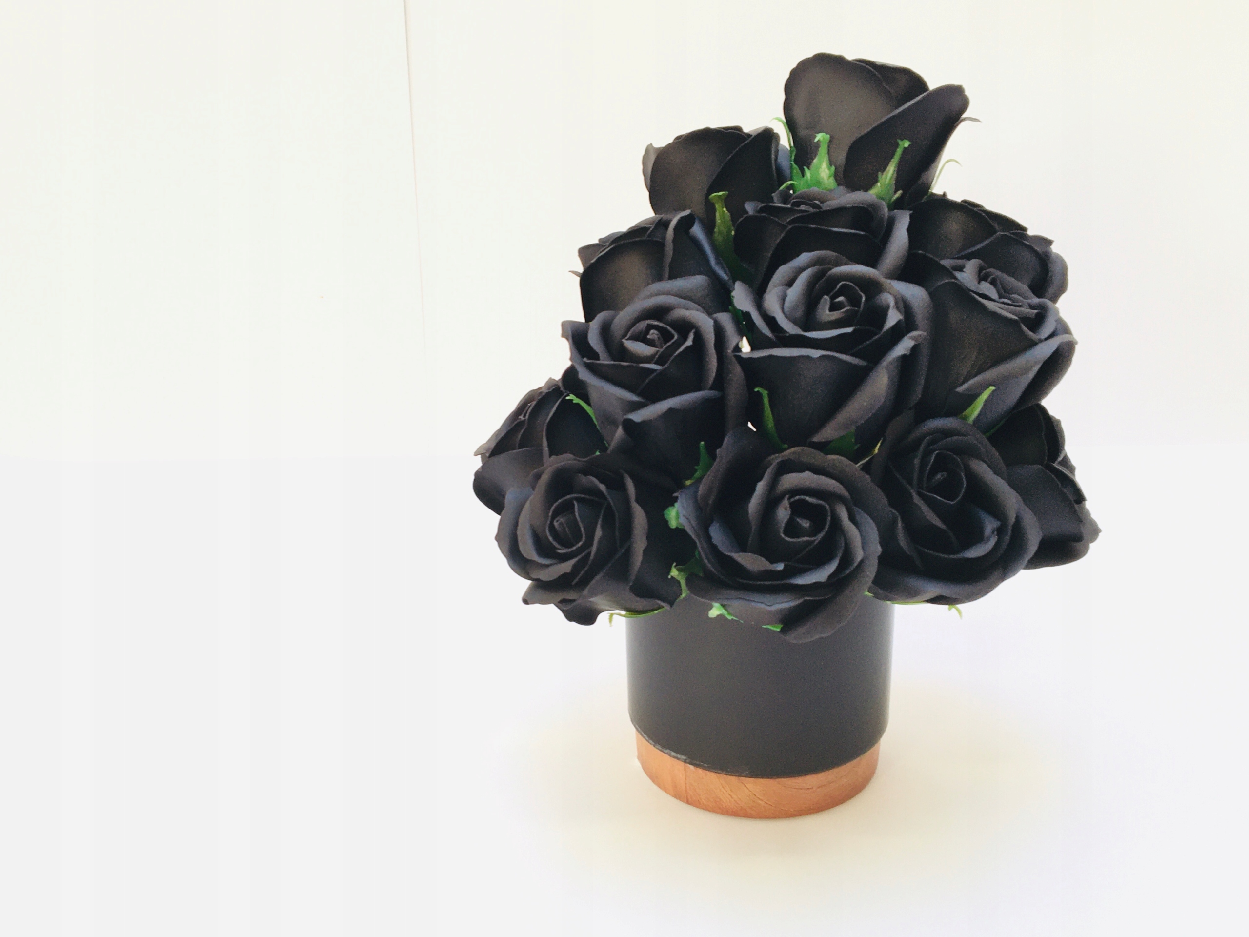 -15% BUKIET CZARNE MYDLANE WIECZNE RÓŻE na smutek żal pamiętamy dekoracja box