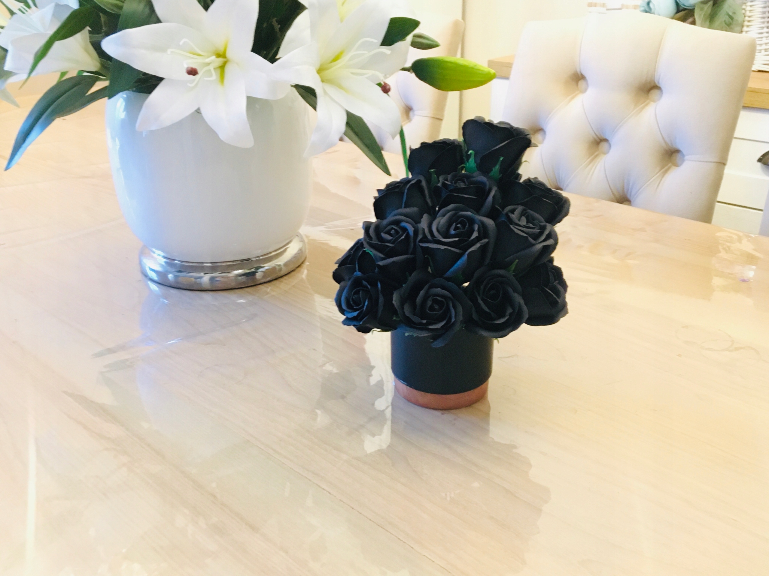 BUKIET CZARNE MYDLANE WIECZNE RÓŻE na smutek żal pamiętamy dekoracja box