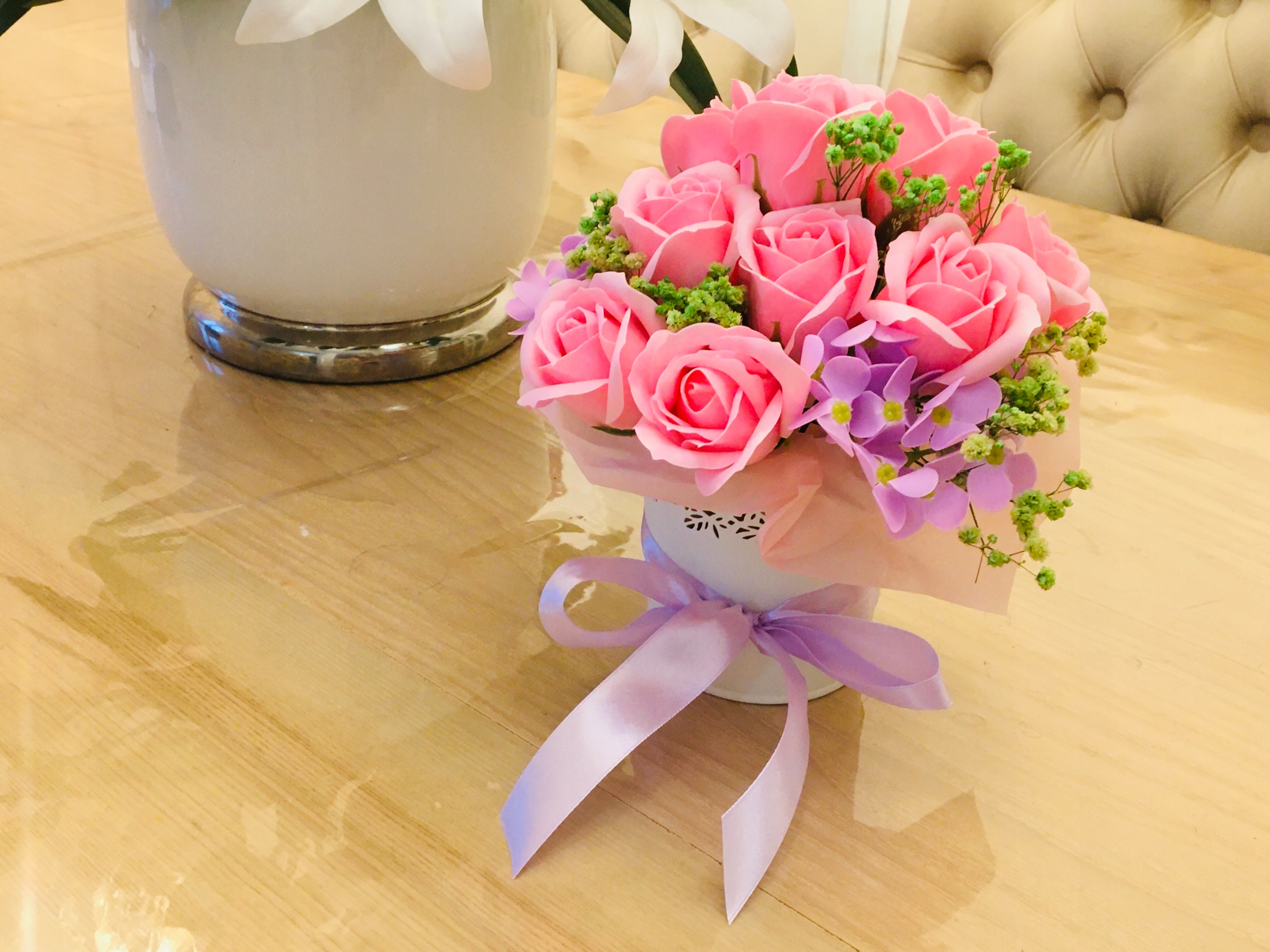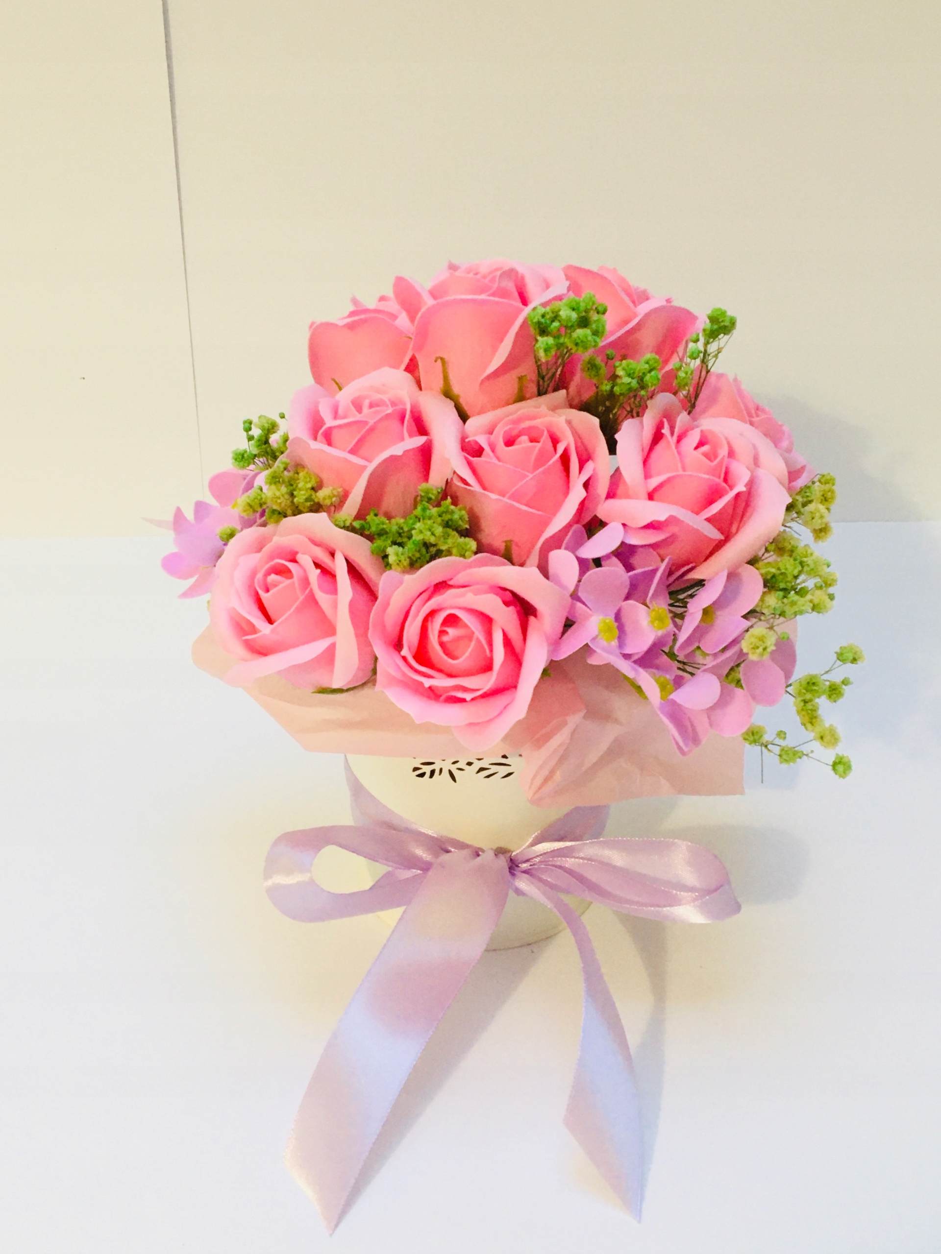 BUKIET KWIATY MYDLANE pachnące na prezent upominek urodziny imieniny róże