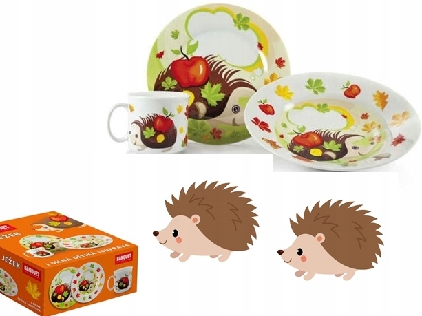 CERAMICZNY ZESTAW DLA DZIECI OBIADOWY śniadaniowy talerzyki jeżyk zastawa