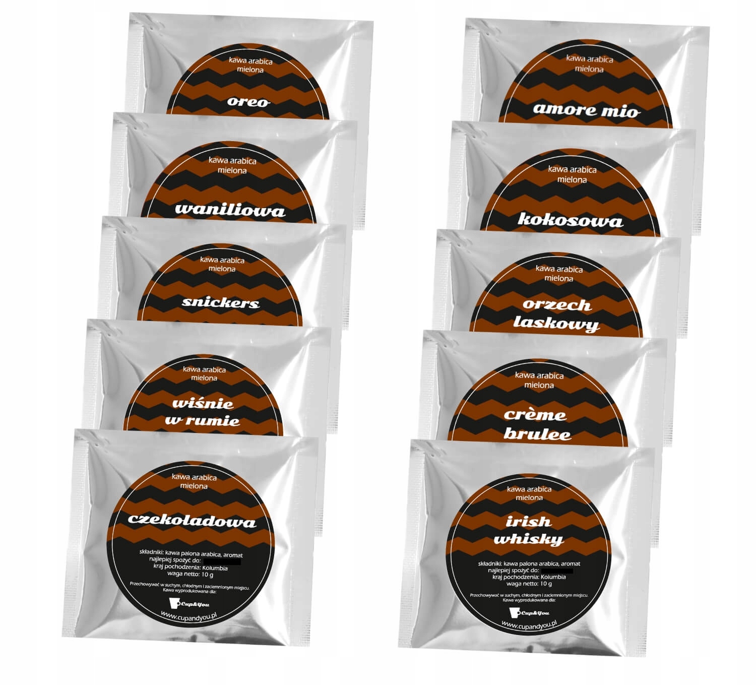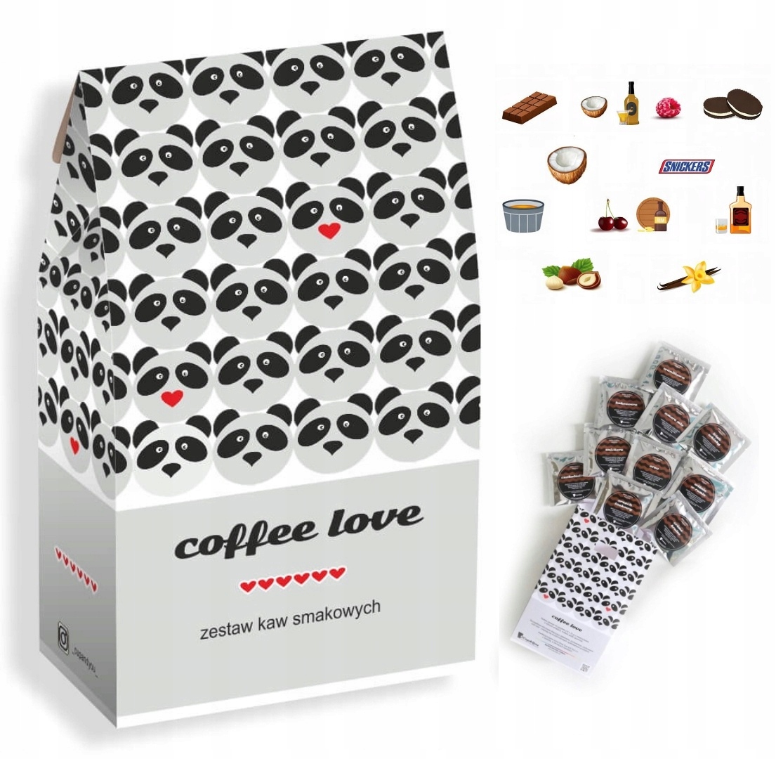 Zestaw prezentowy upominkowy "PANDA LOVE" - 10 smaków kaw deserowych - prezent upominek na walentynki dla chłopaka dziewczyny niej niego żony męża kobiety faceta mężczyzny narzeczonej