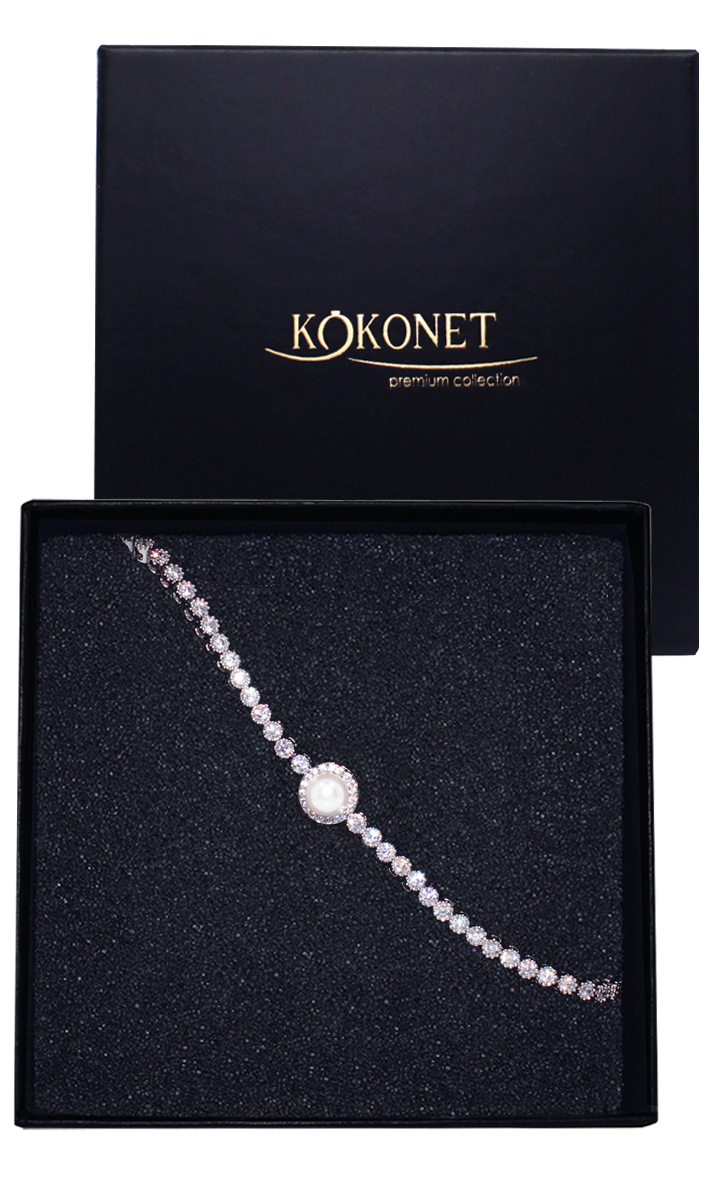 Delikatna srebrna bransoletka ślubna perła perłowa cyrkonie drobna PREZENT