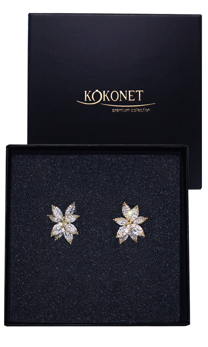 DELIKATNE złote kolczyki przy uchu krótkie ŚLUBNE kwiaty listki płatki glam
