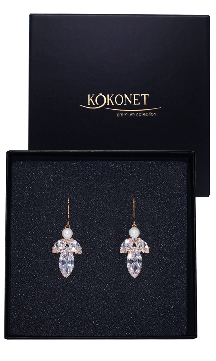 DELIKATNE złote kolczyki wiszące bigiel ŚLUBNE wesele perłowe cyrkonie glam