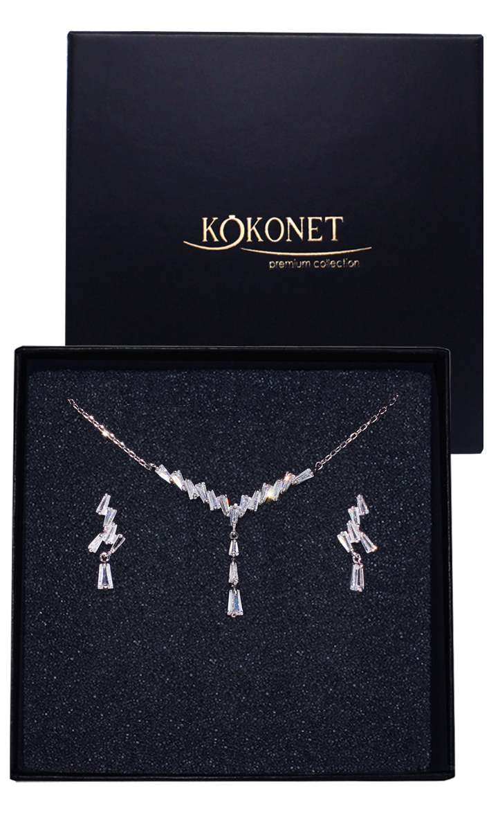 Delikatny komplet srebrnej biżuterii kolczyki naszyjnik srebrny w pudełku
