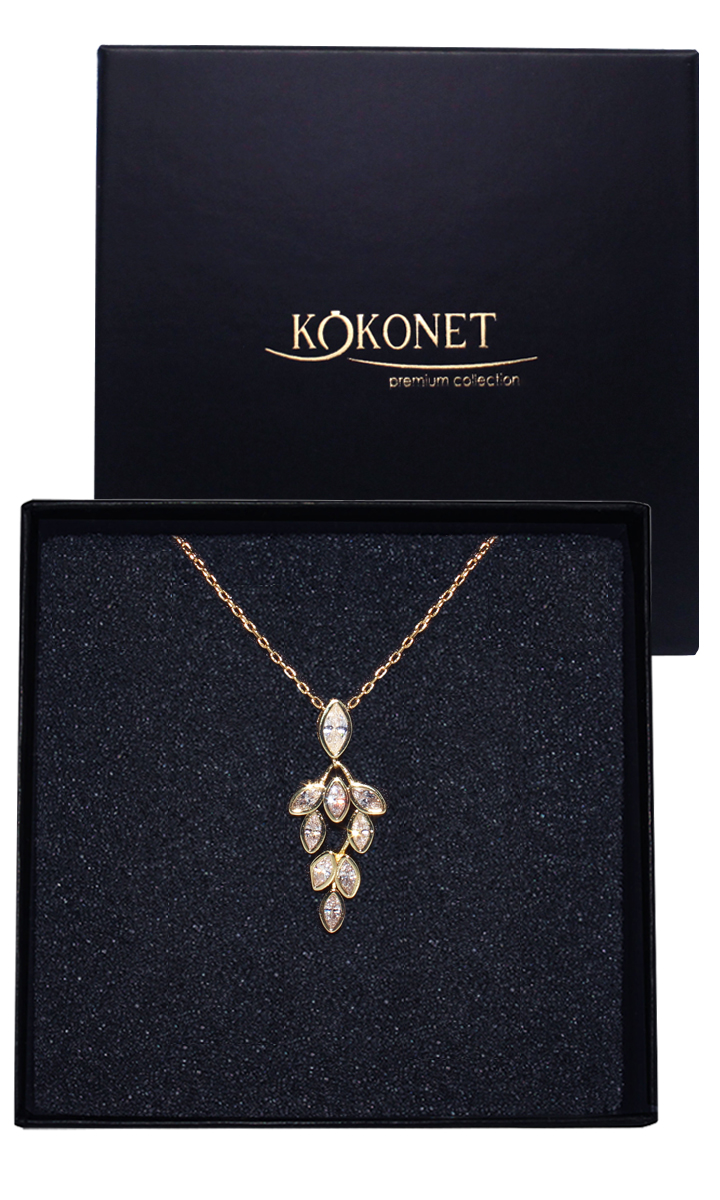 Delikatny naszyjnik pozłacany ślubny z kryształkami listki cyrkonie boho