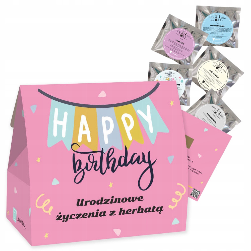 Drobny urodzinowy zestaw prezentowy torebka pudełko z herbatami sypanymi - 5 różnych smaków w saszetkach po 5g - prezent dla kobiety żony dziewczyny mamy niej