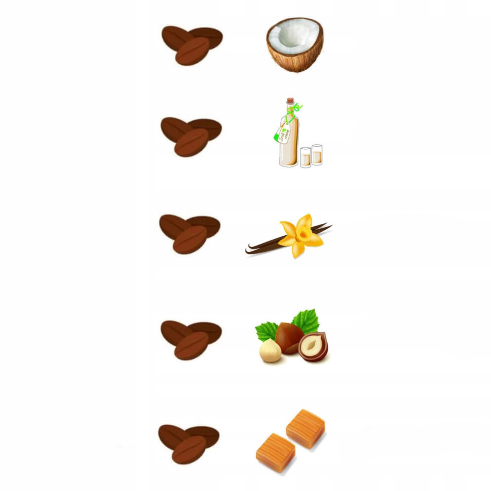 Drobny urodzinowy zestaw prezentowy torebka pudełko z kawą aromatyzowaną - 5 różnych smaków kawy arabica w saszetkach po 10g - prezent dla kobiety faceta