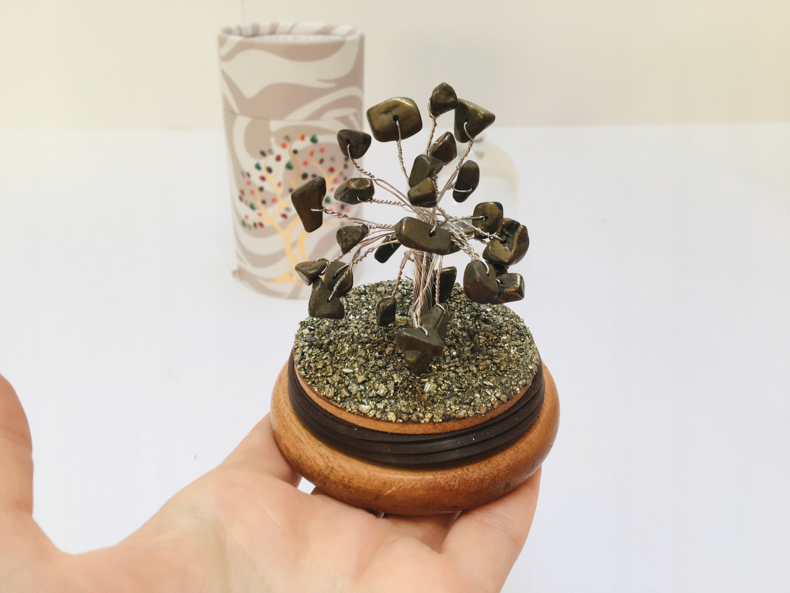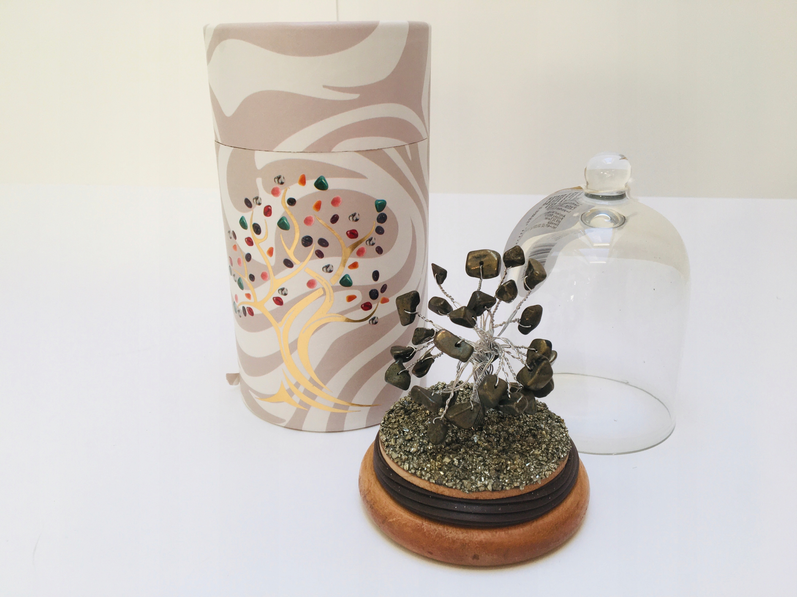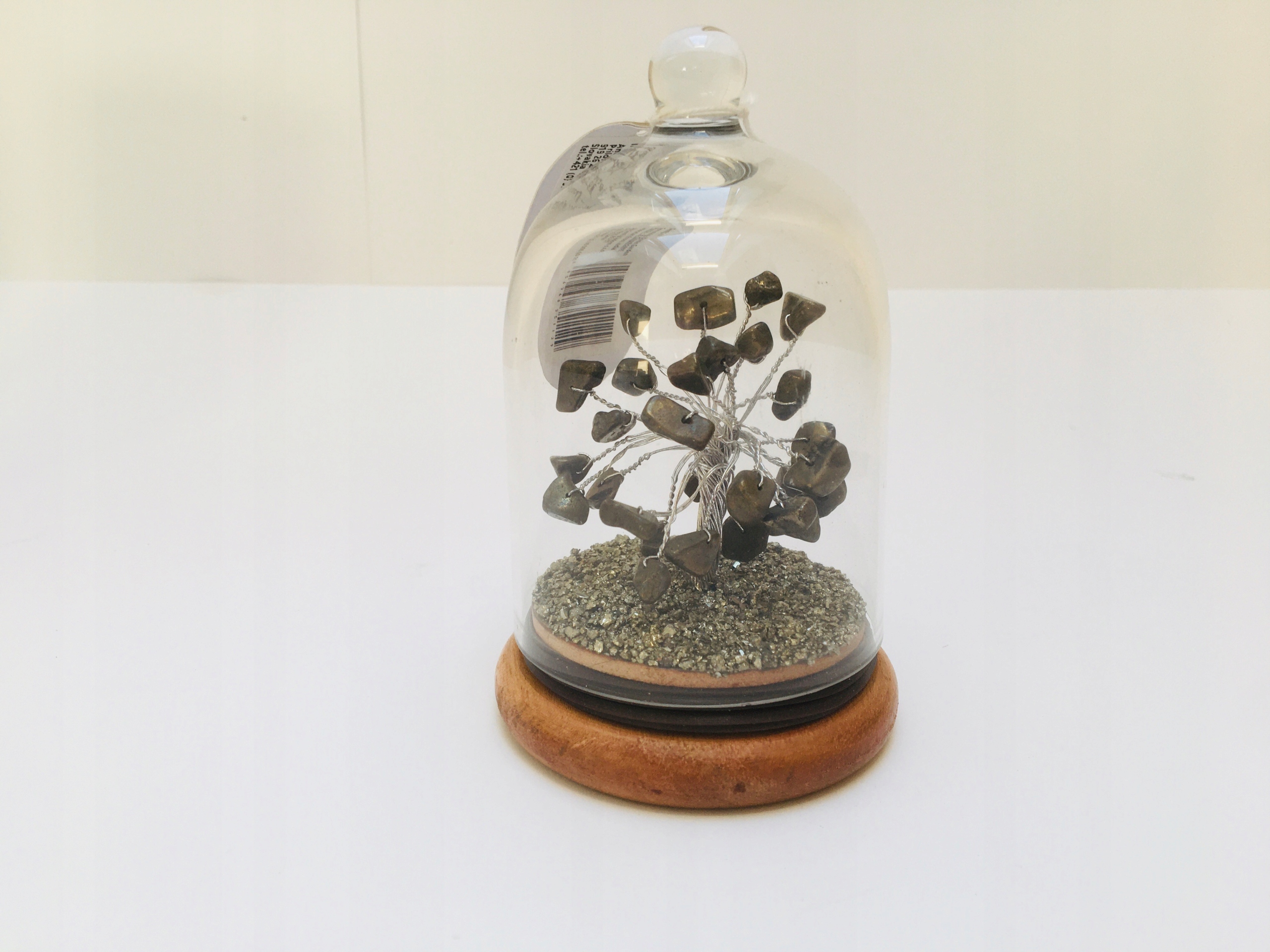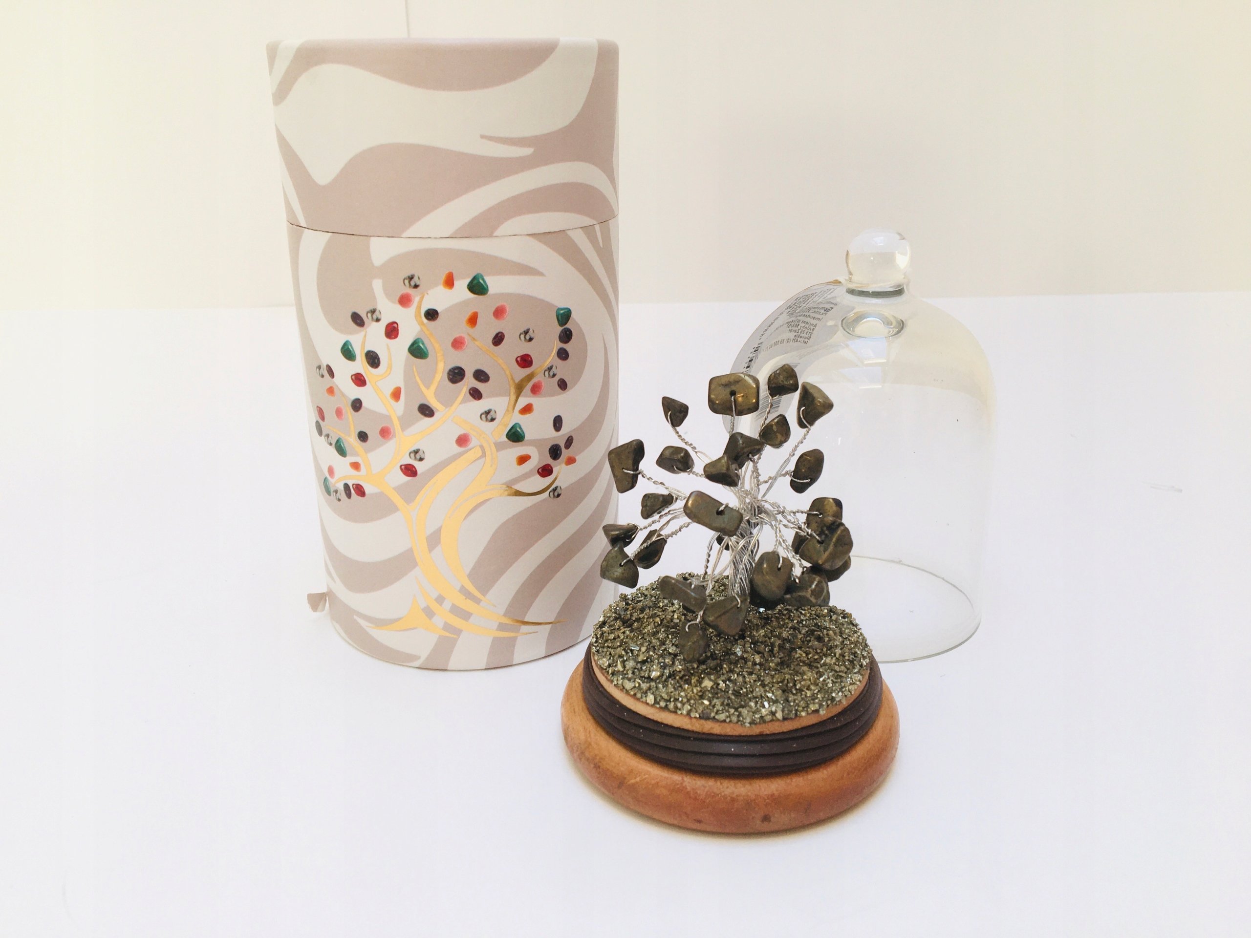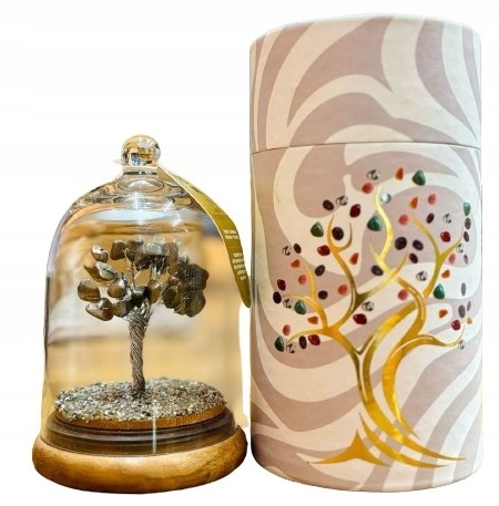 Drzewko KAMIENI z PIRYTU amulet talizman na szczęście w Szklanej Kopule box