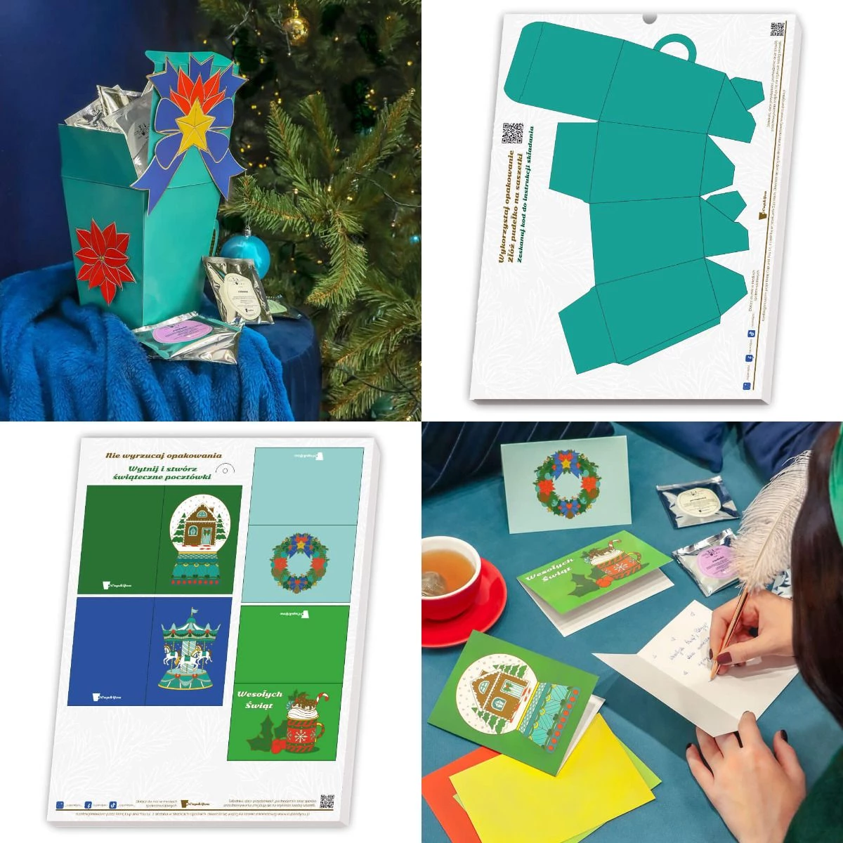 ➡️ Mini pudełko – z części opakowania stworzysz ozdobne pudełeczko, idealne na drobny prezent, bilecik z życzeniami lub schowanie własnych grudniowych „skarbów”.