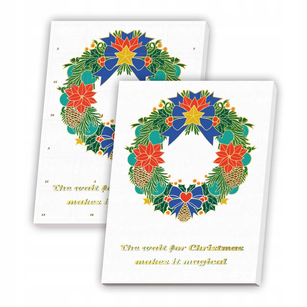 Wizualna szata kalendarza nawiązuje do wieńca adwentowego, który również przywodzi przedświąteczny czas oczekiwania Świąt.