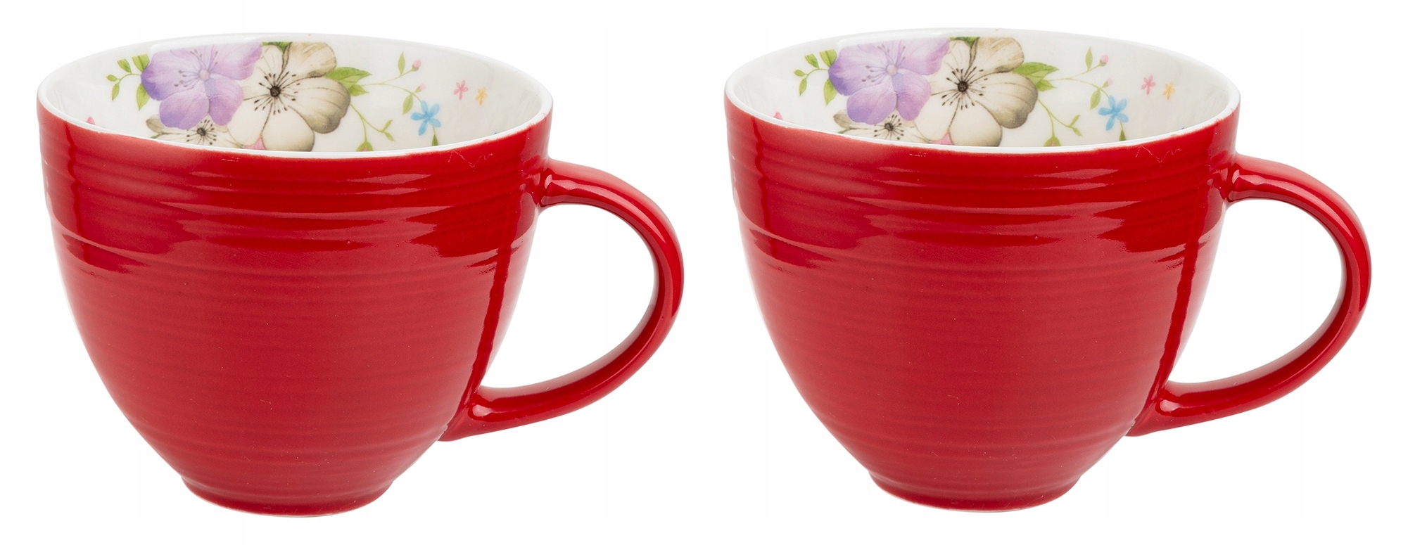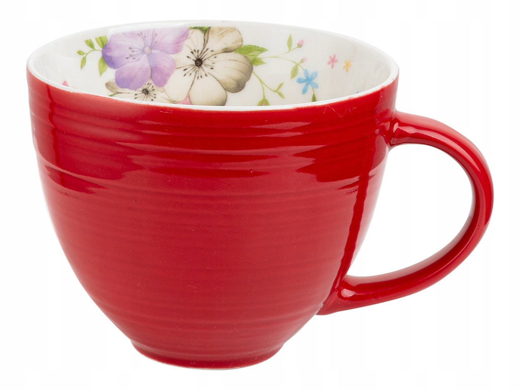 DUŻY KUBEK CZERWONY z kwiatami 2szt na kawę herbatę 450 ml prezent święta