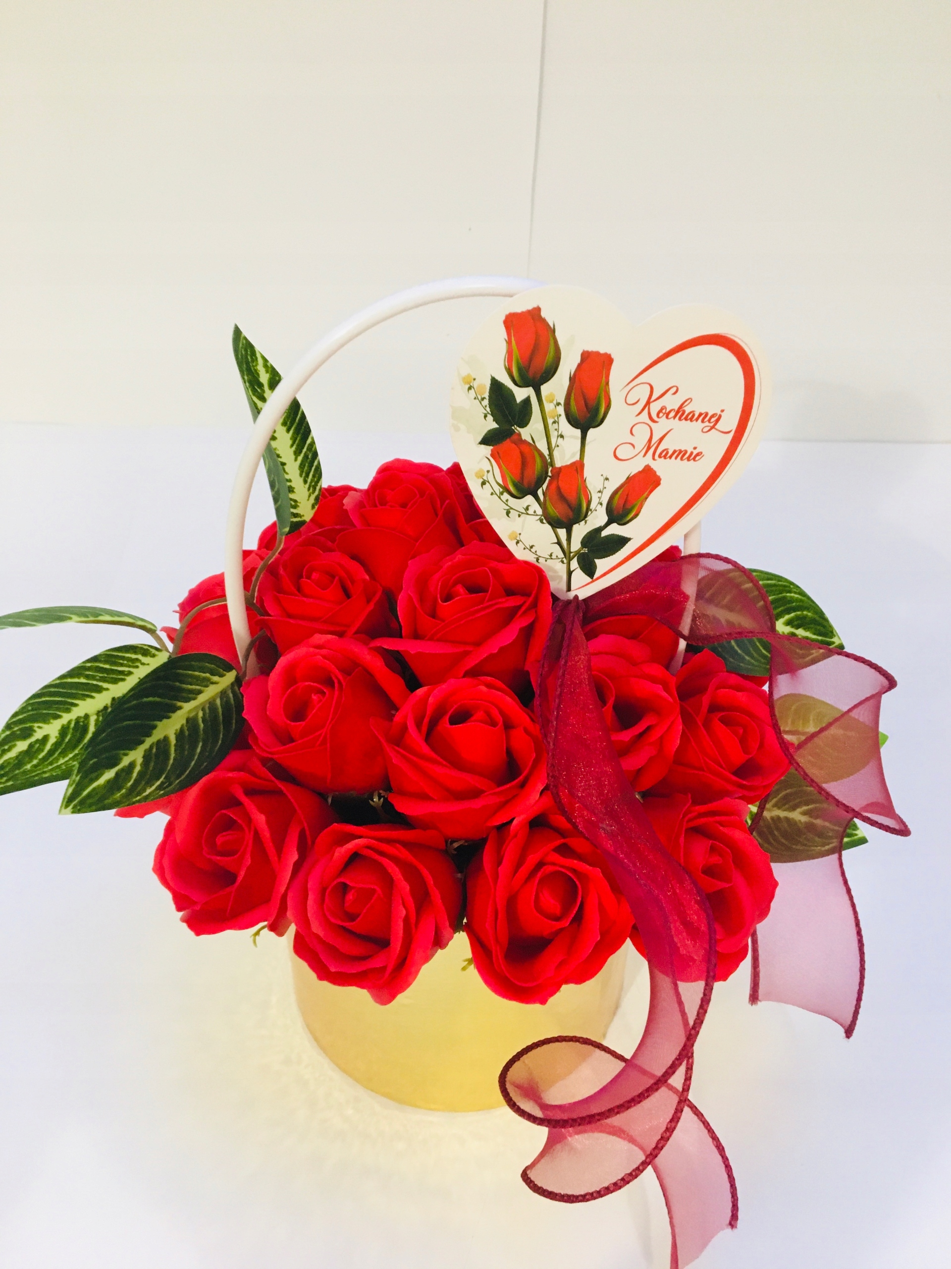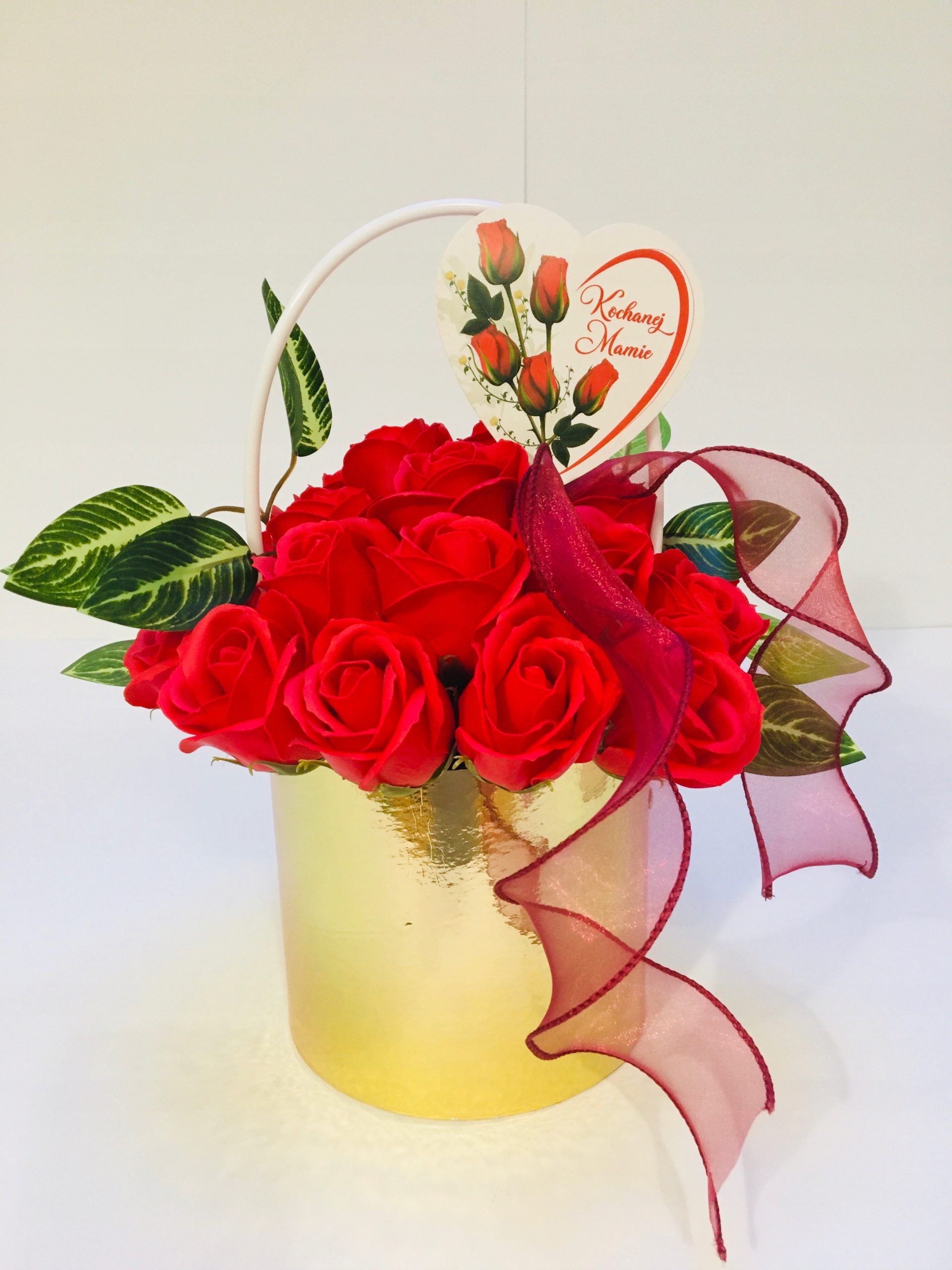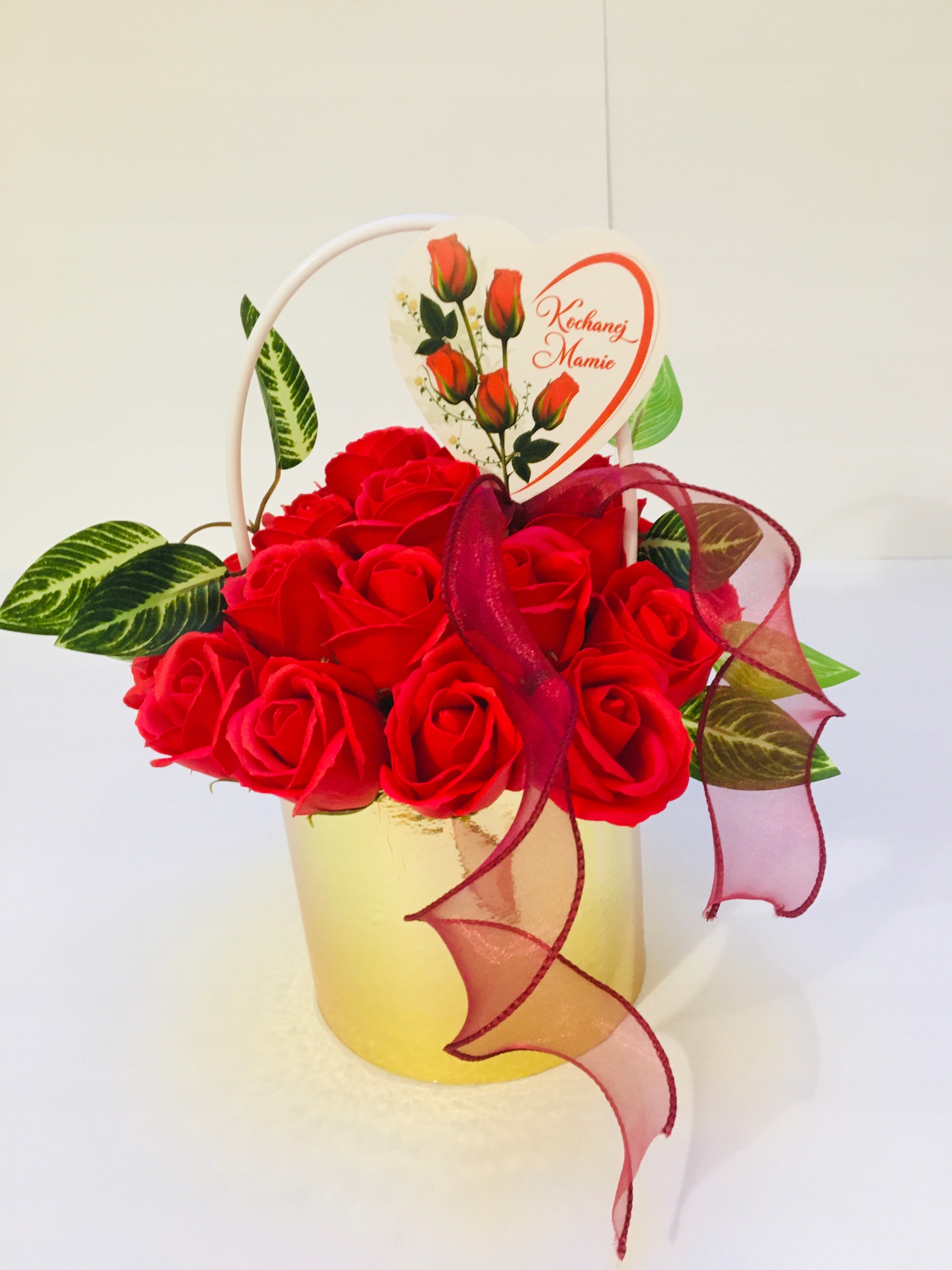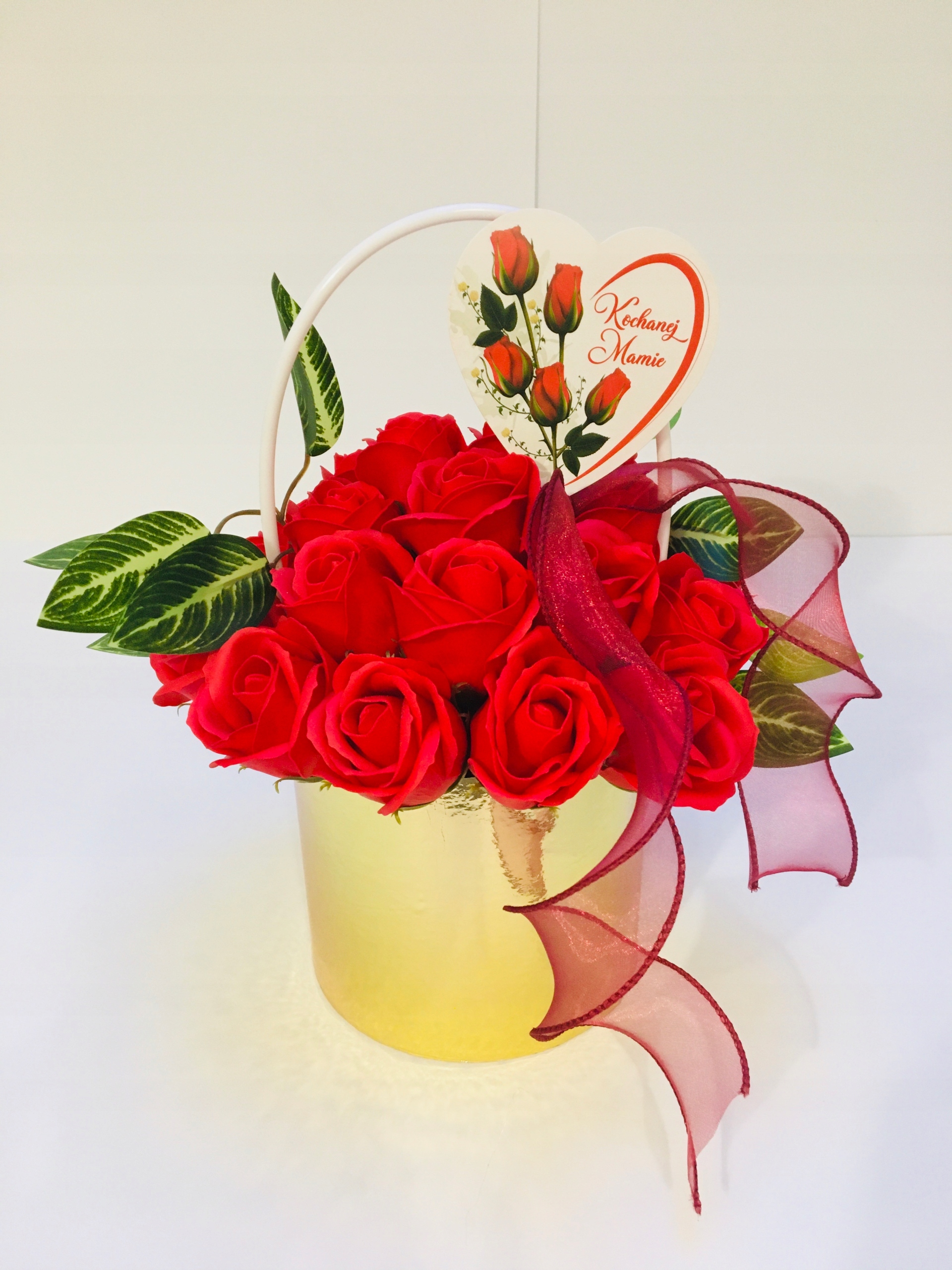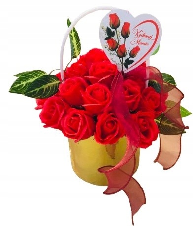 DZIEŃ dla MAMY kwiaty RÓŻA W ZŁOTYM BOXIE mydlane trwałe prezent z mydła