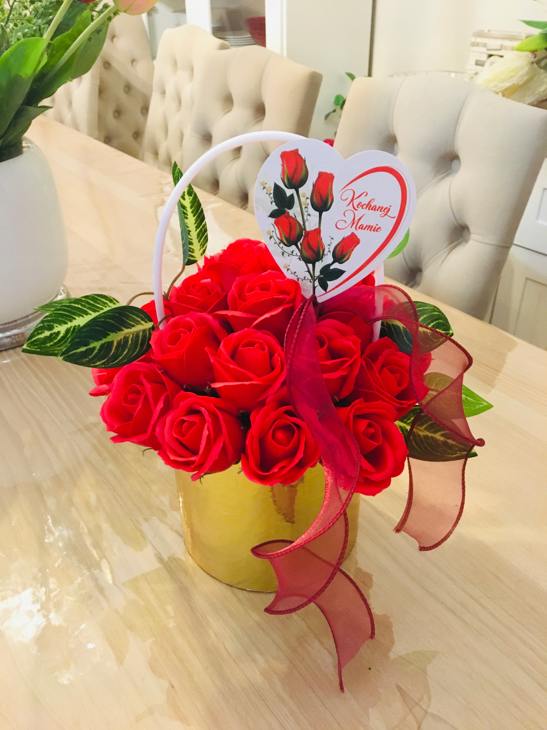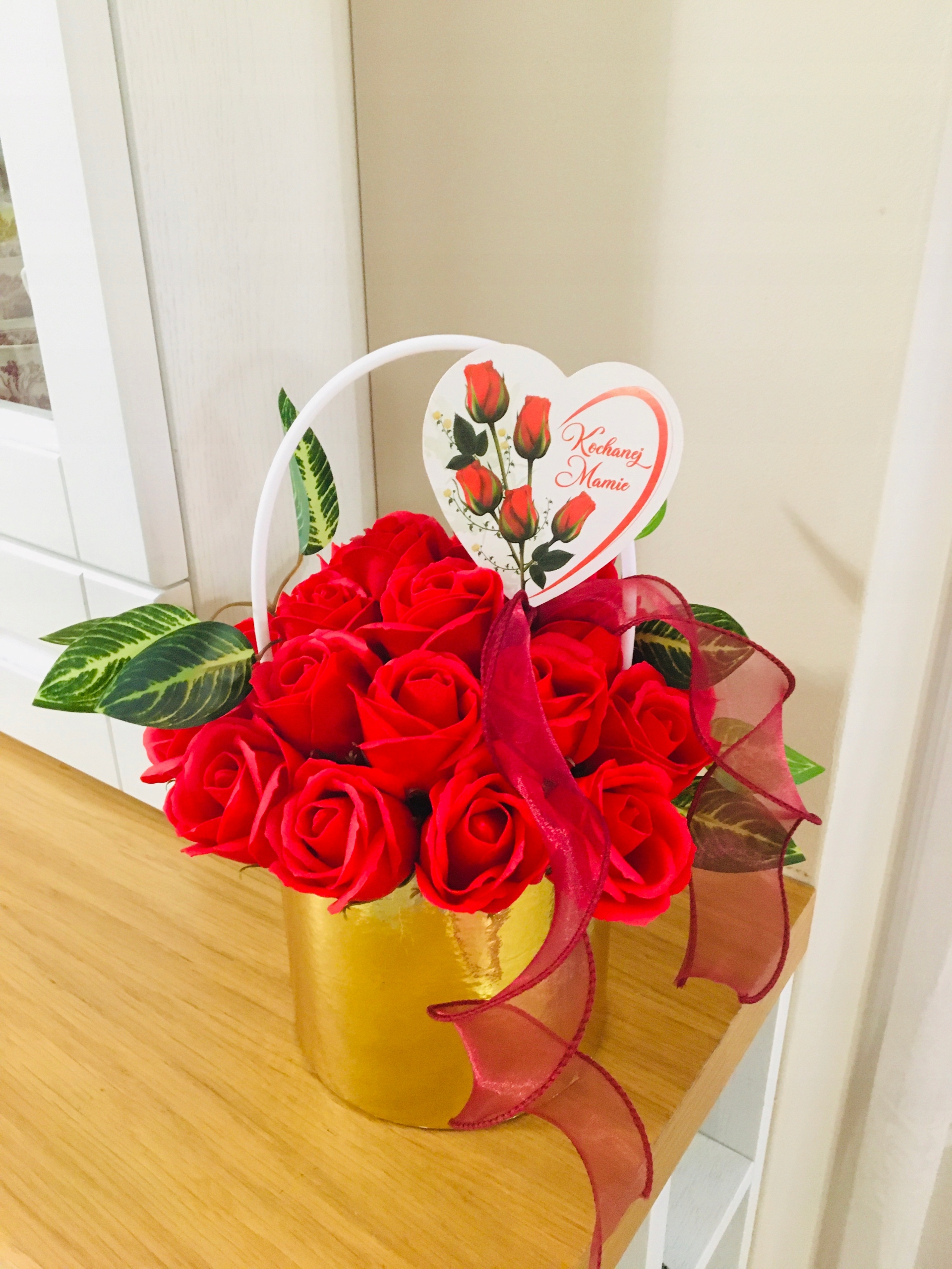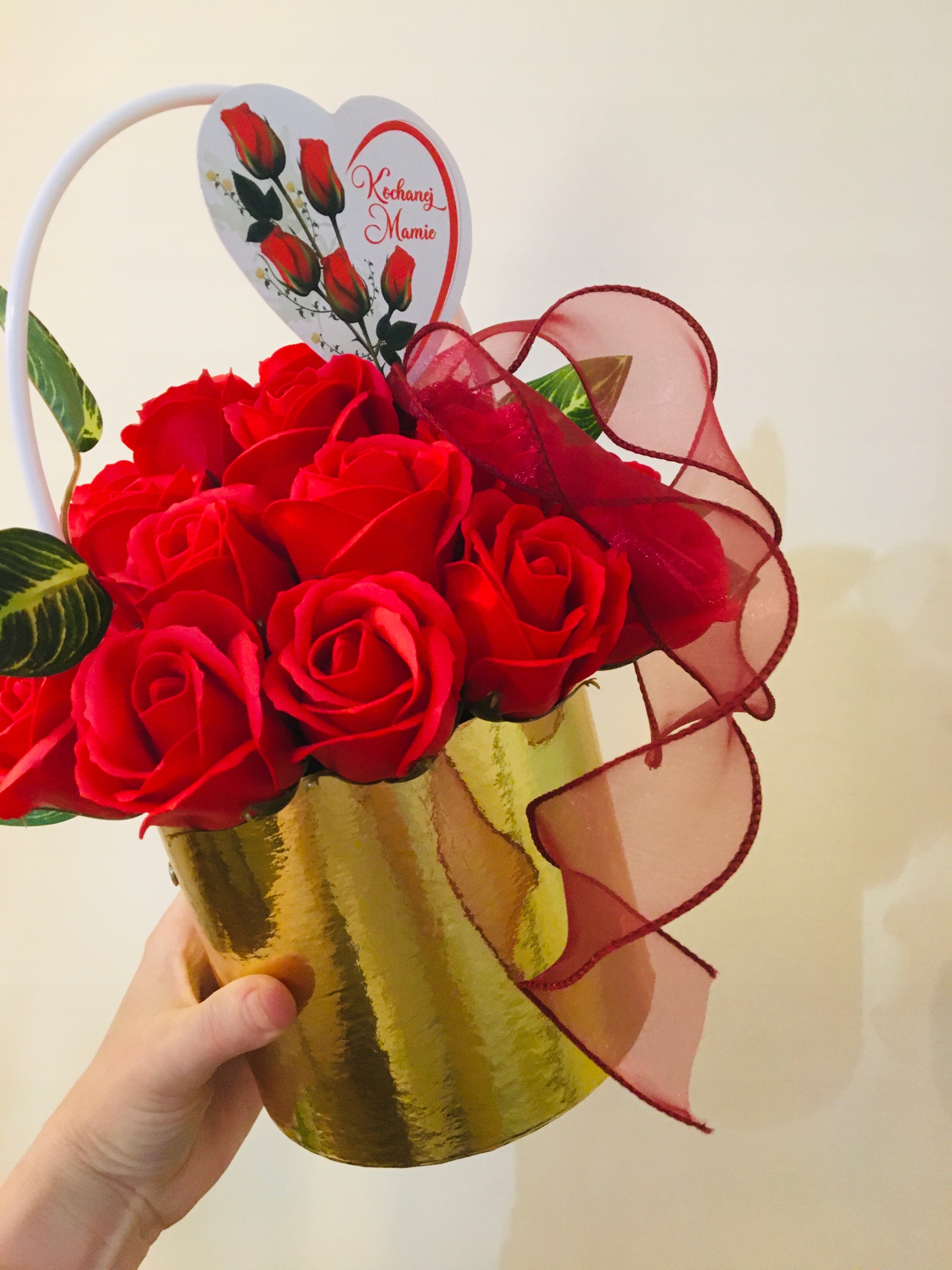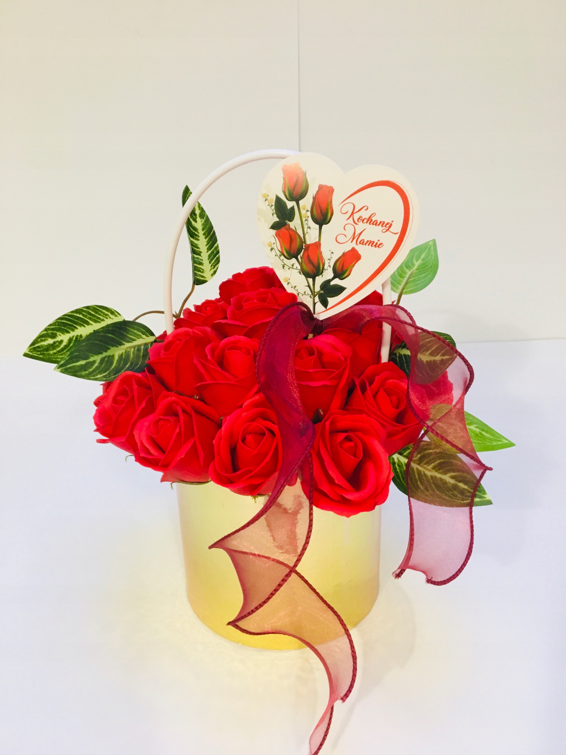 DZIEŃ dla MAMY kwiaty RÓŻA W ZŁOTYM BOXIE mydlane trwałe prezent z mydła