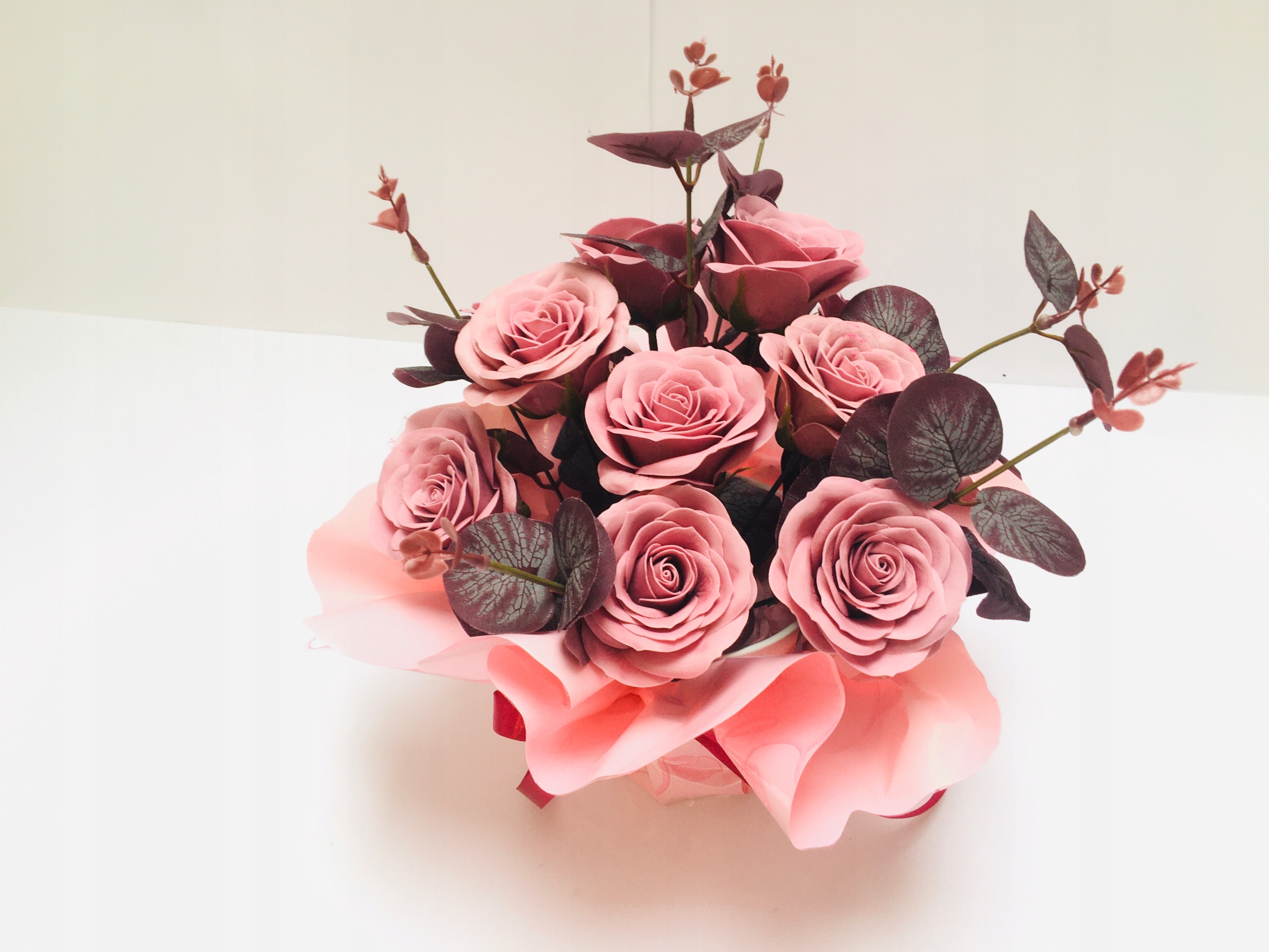 Dzień mamy BUKIET Z KWIATÓW MYDLANYCH róża doniczka prezenty urodziny box