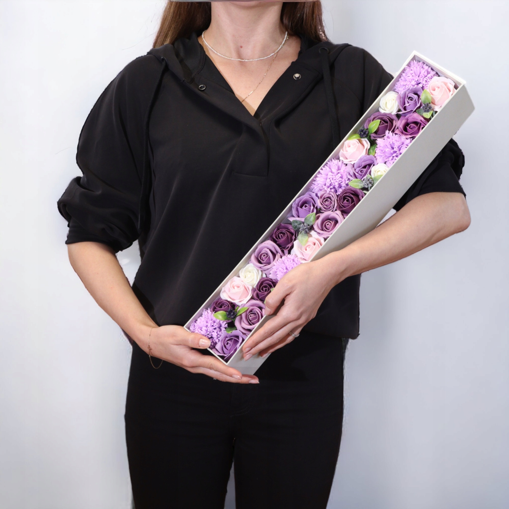 FLOWER BOX DŁUGI pudełko kwiatów z mydła pachną na urodziny imieniny kobiet
