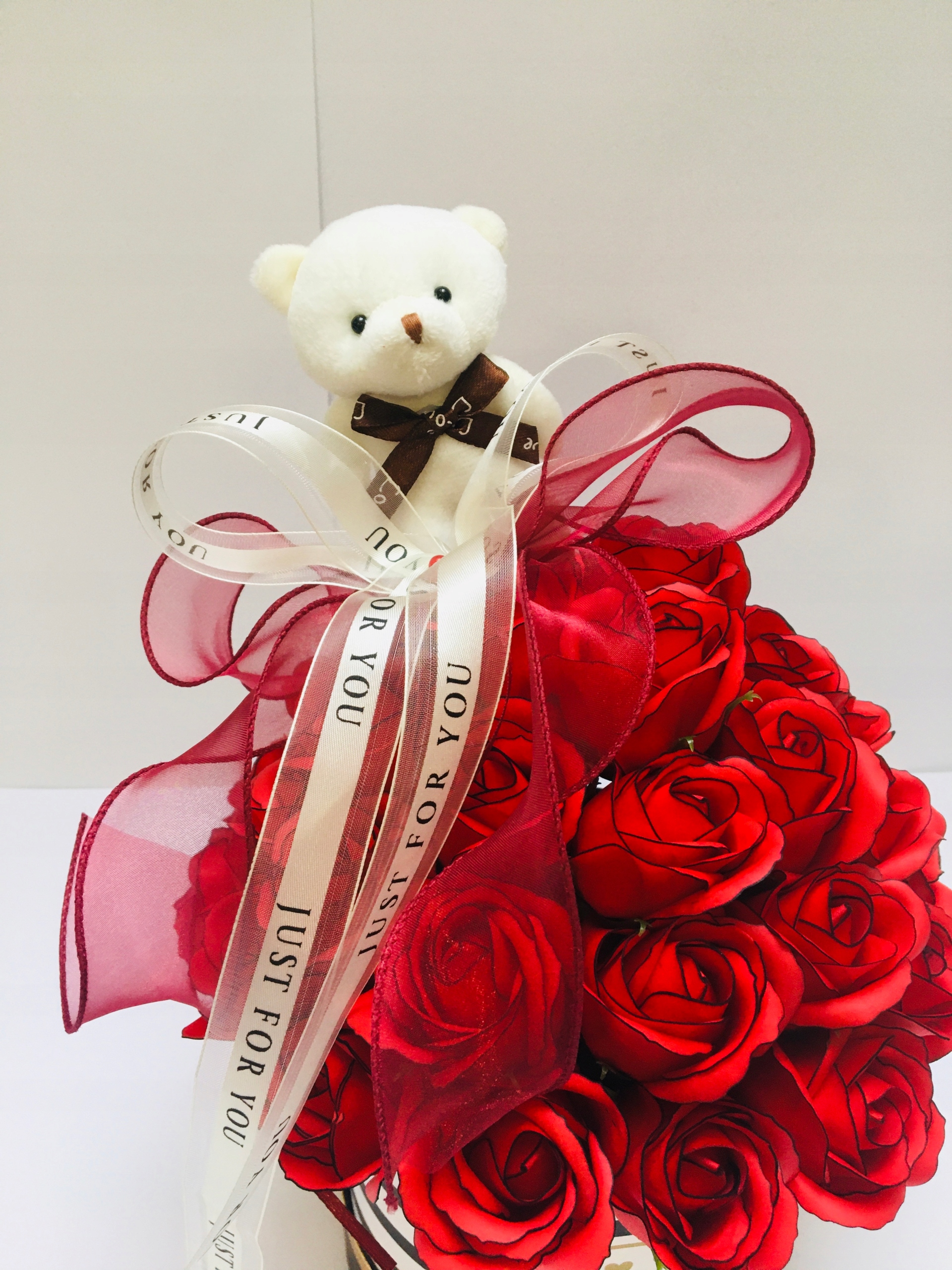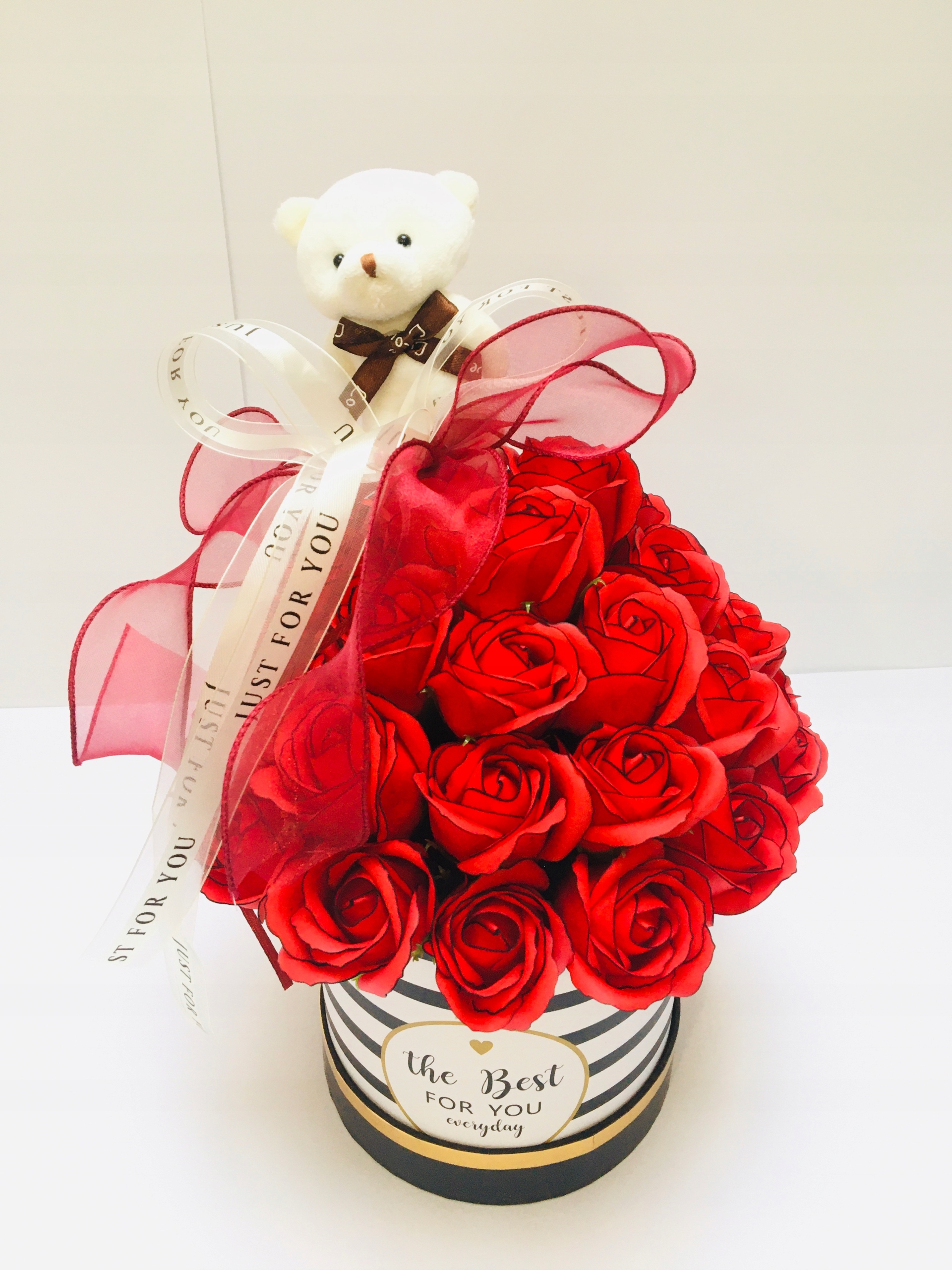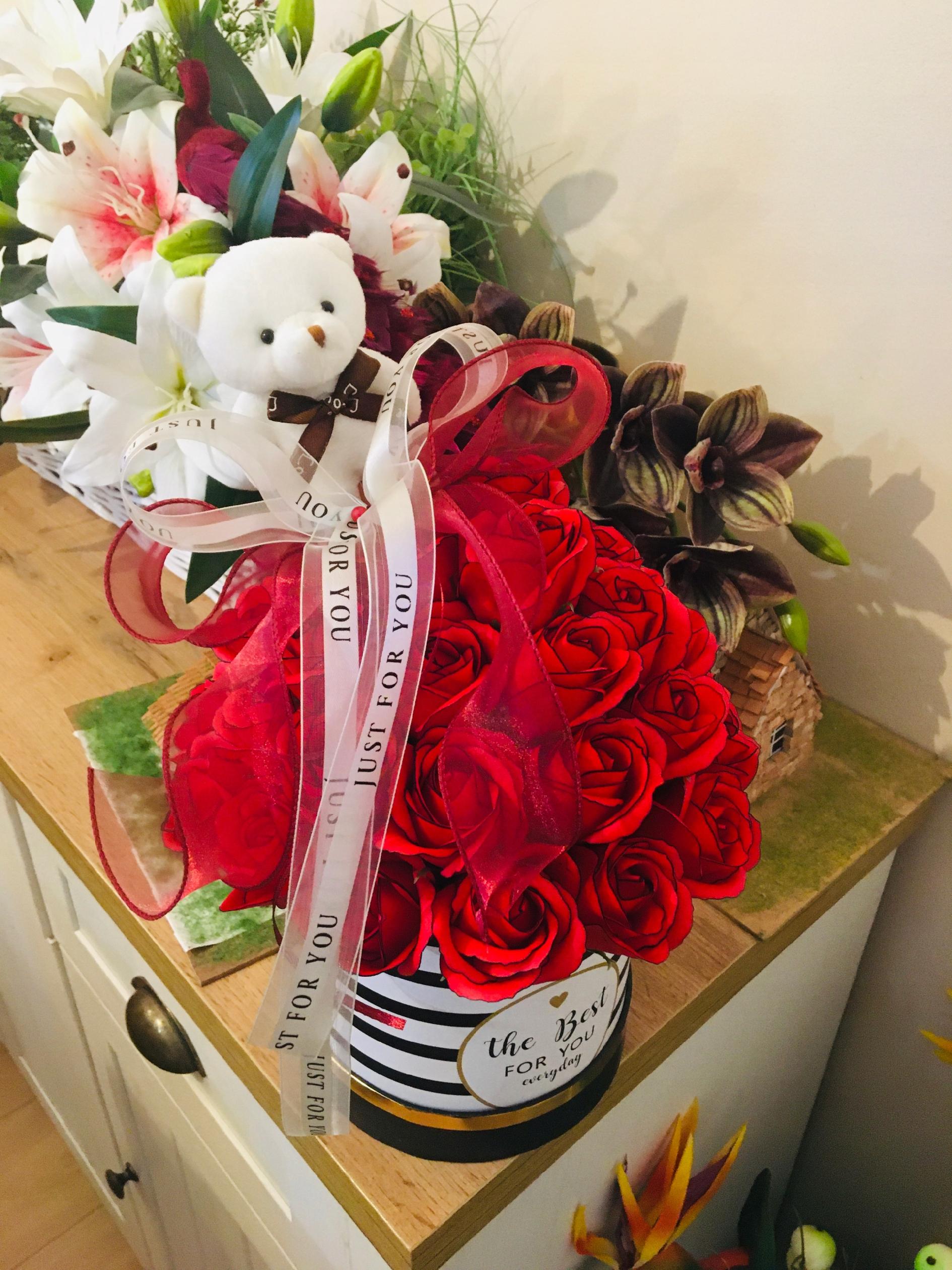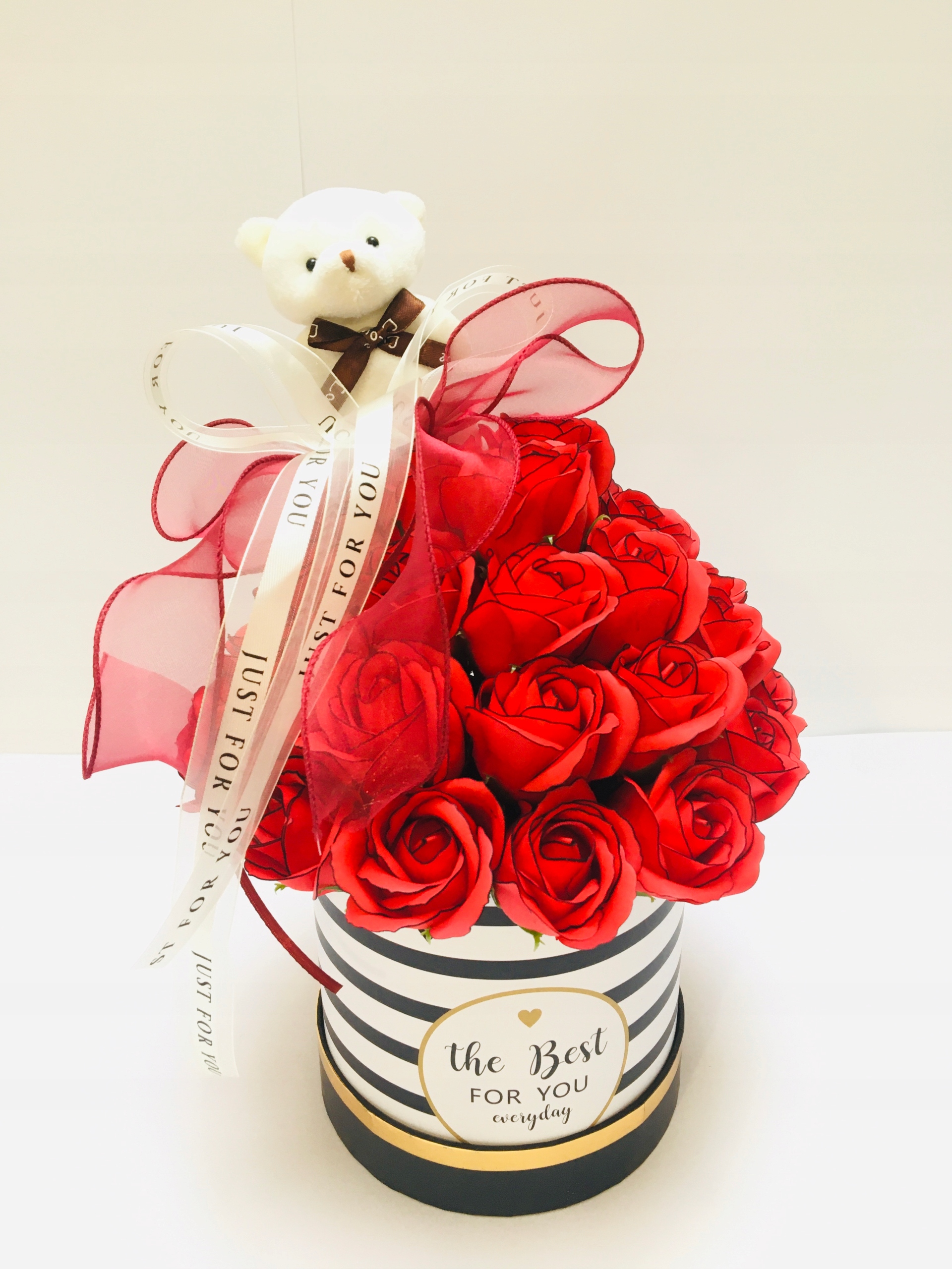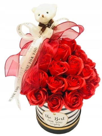 FLOWER BOX DUŻY pachnie kwiaty mydlane róża miś na urodziny dzień kobiet 18