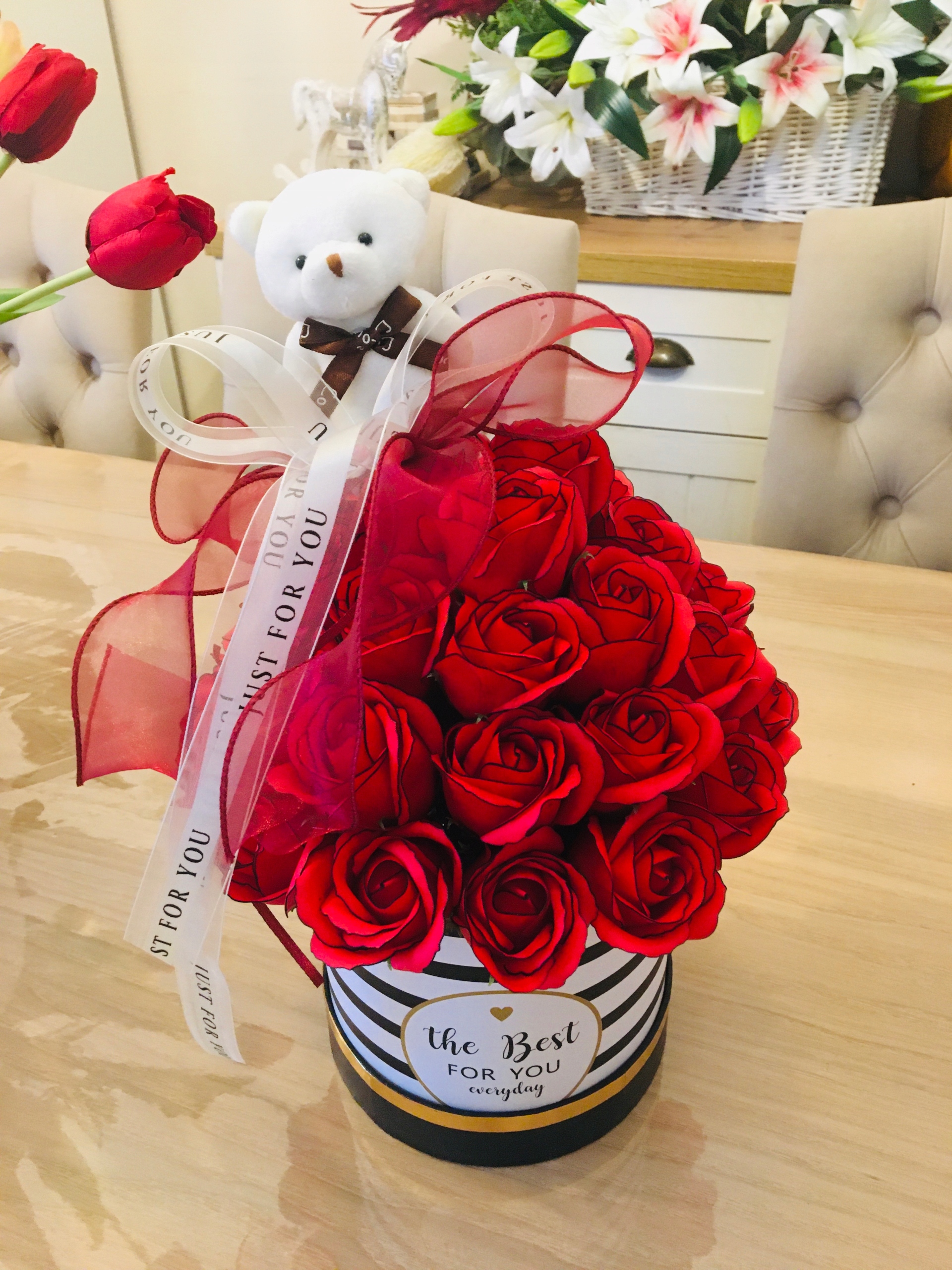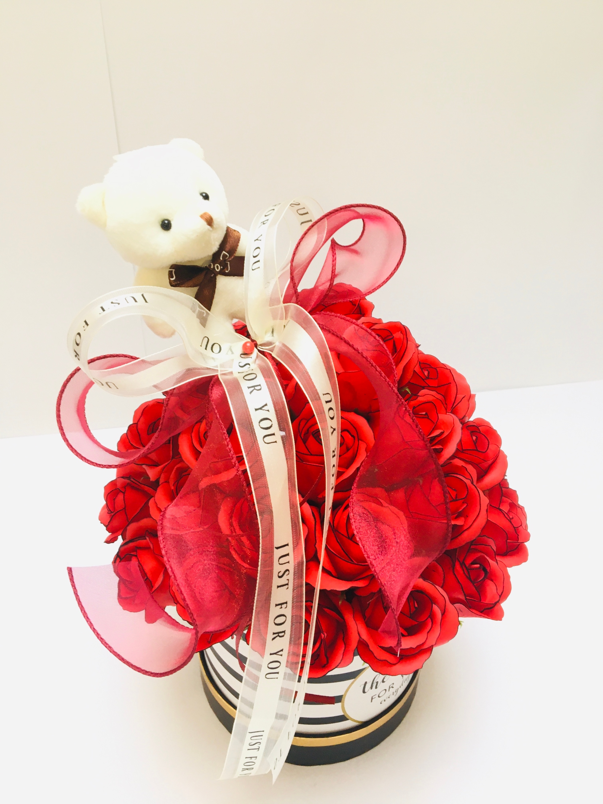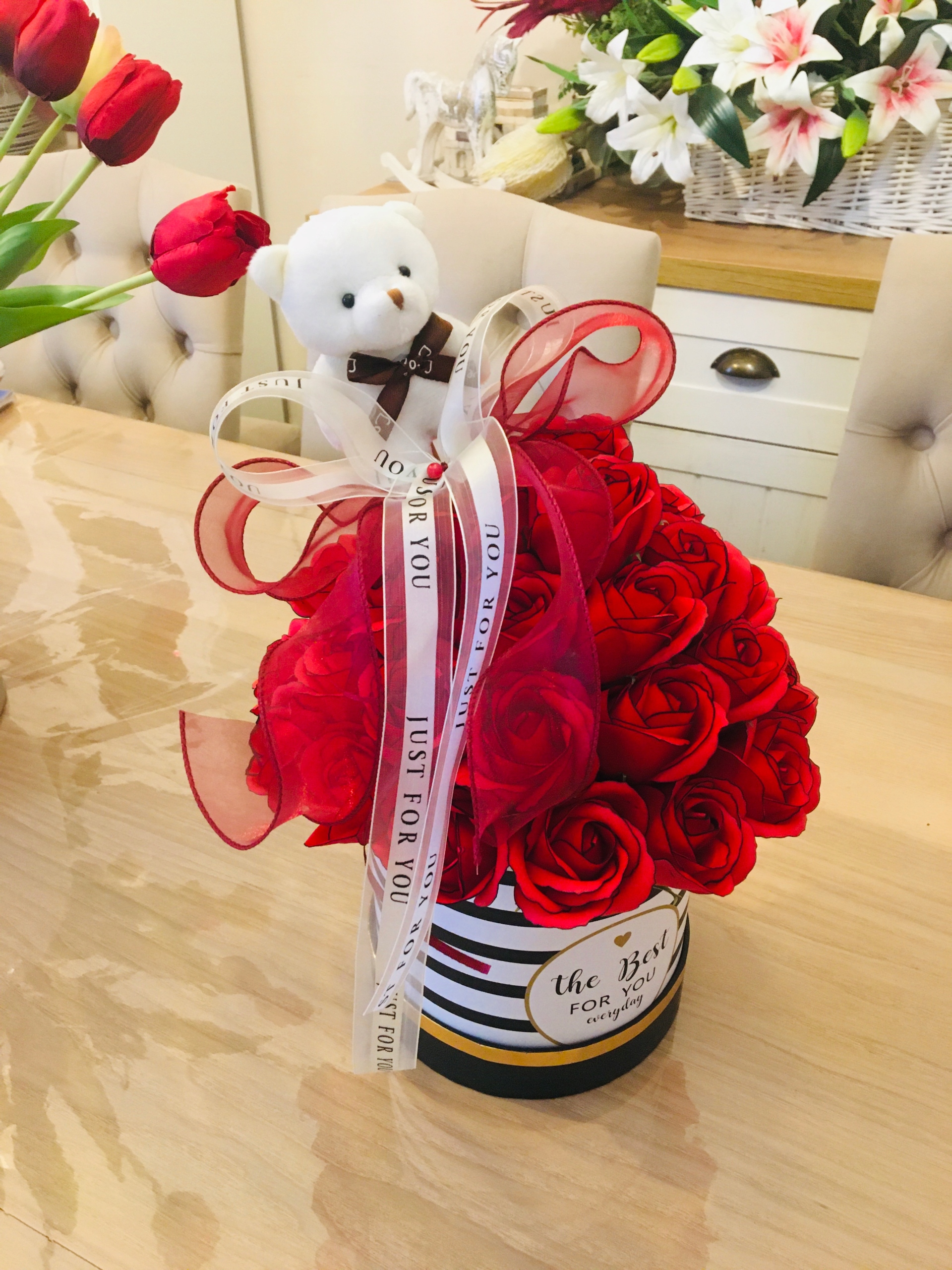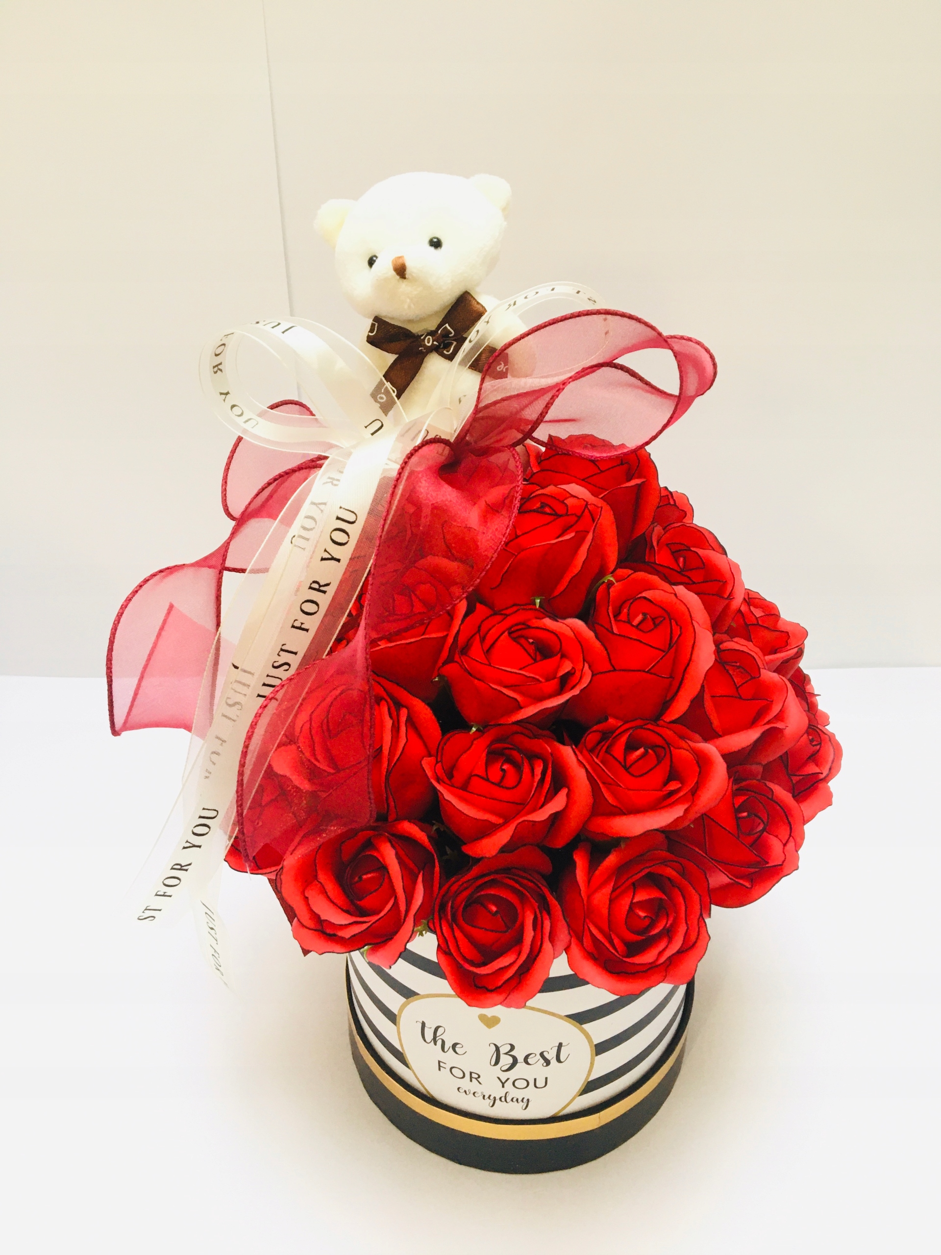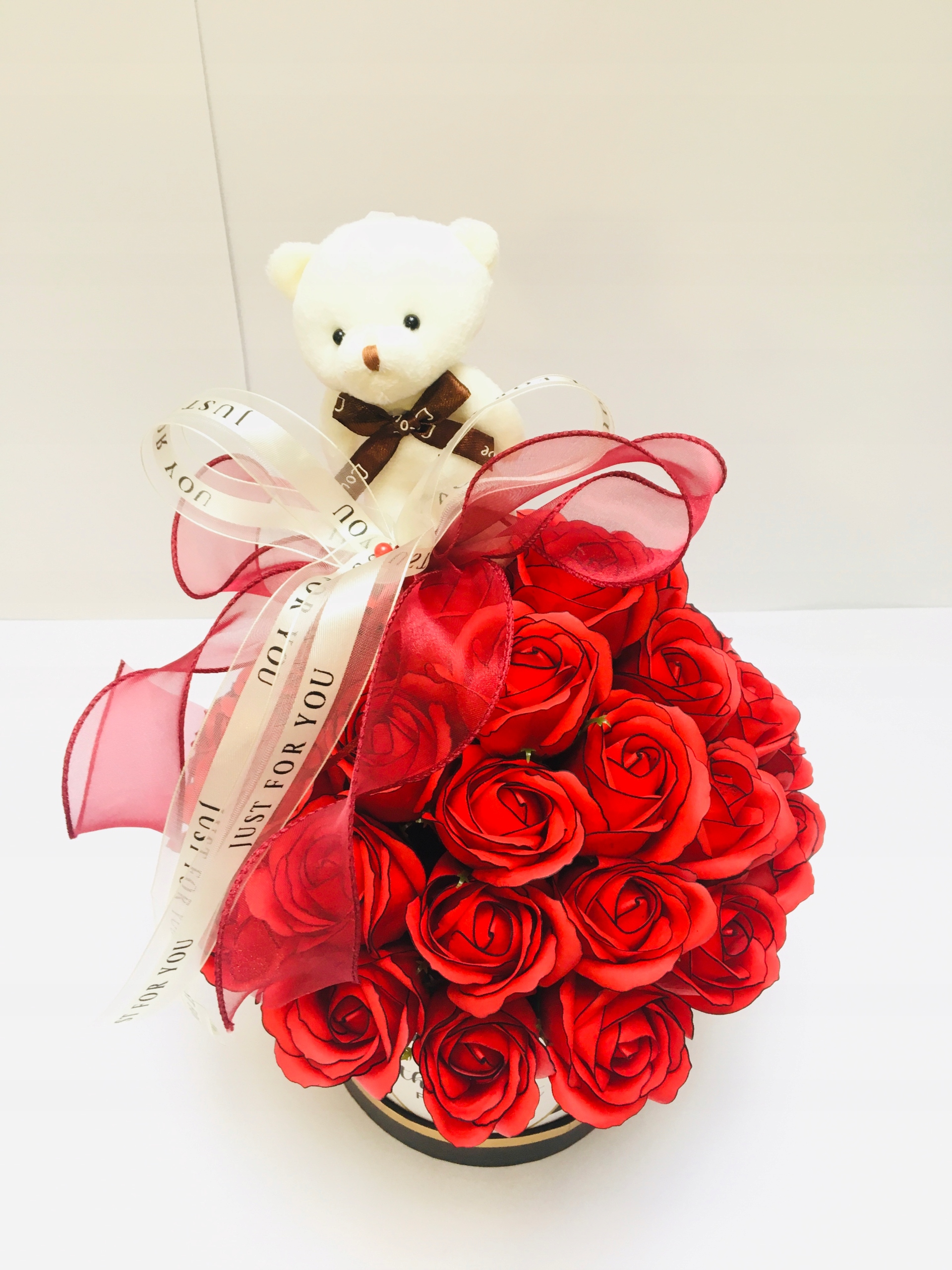 FLOWER BOX DUŻY pachnie kwiaty mydlane róża miś na urodziny dzień kobiet 18