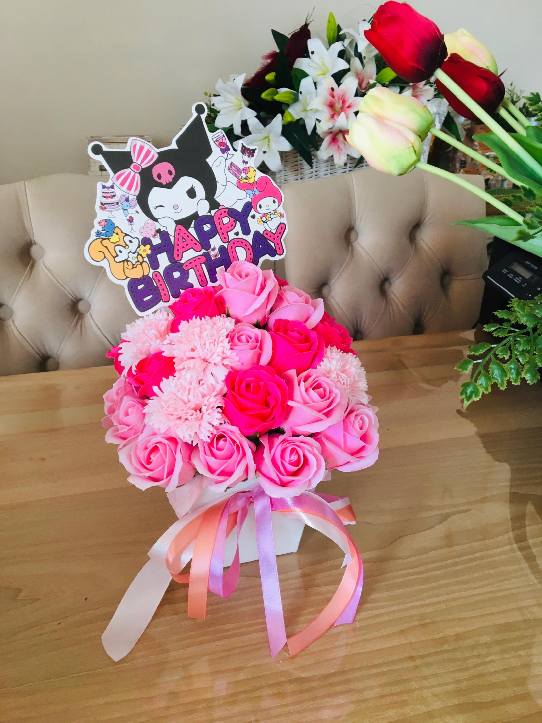 FLOWER BOX RÓŻOWE kwiaty z mydła pachną na urodziny dziewczynki prezent dar