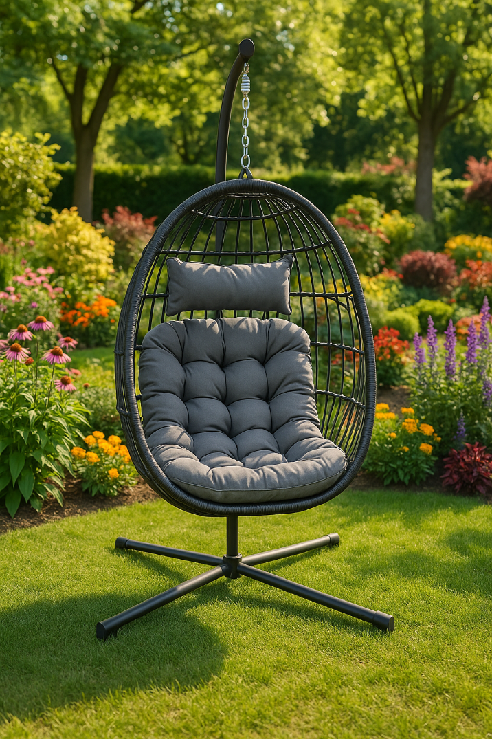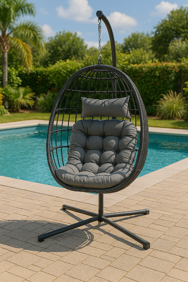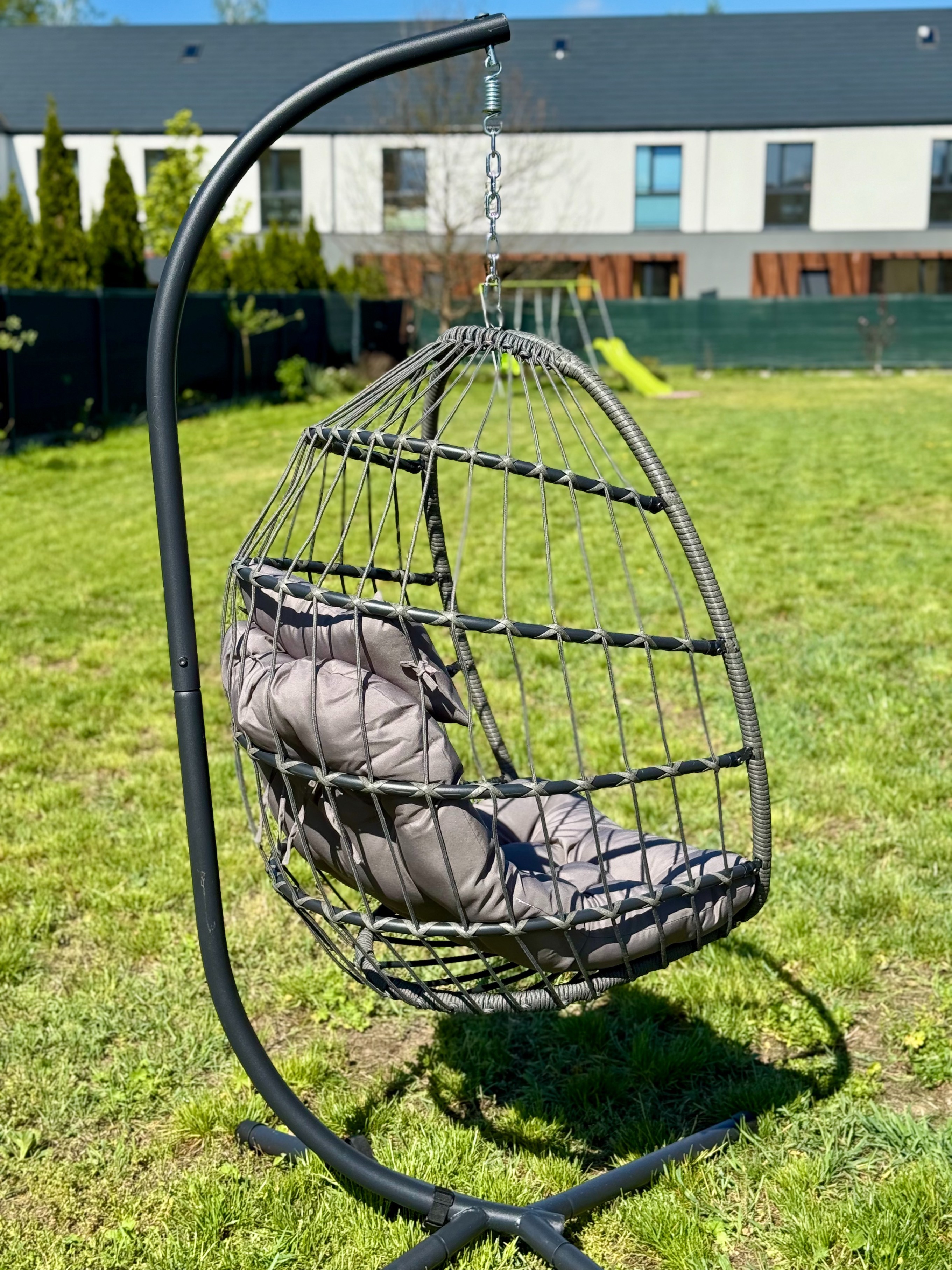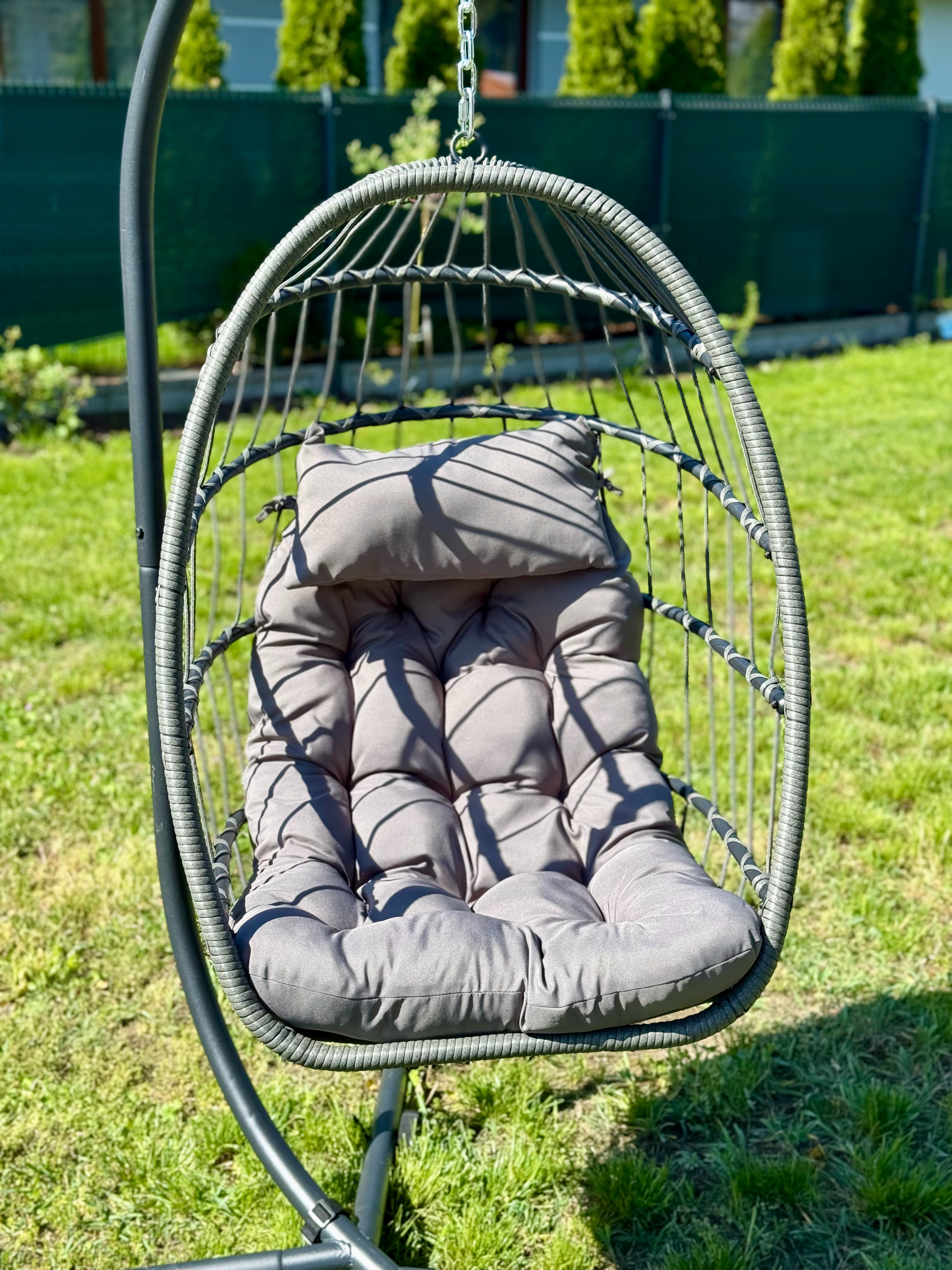 Fotel Podwieszany Na Stalowym Stelażu Składany Ogrodowy Kokon Kosz Wiszący