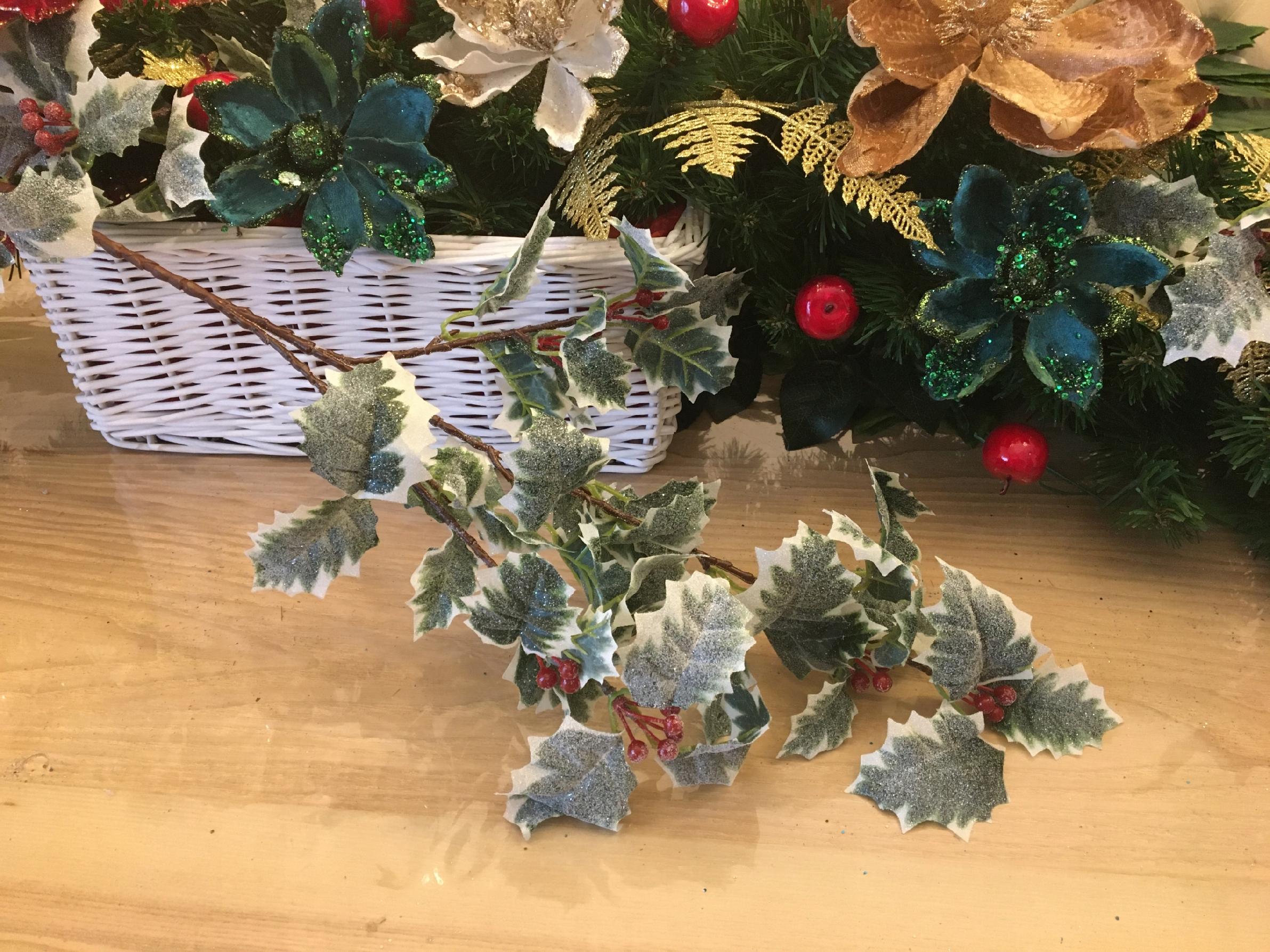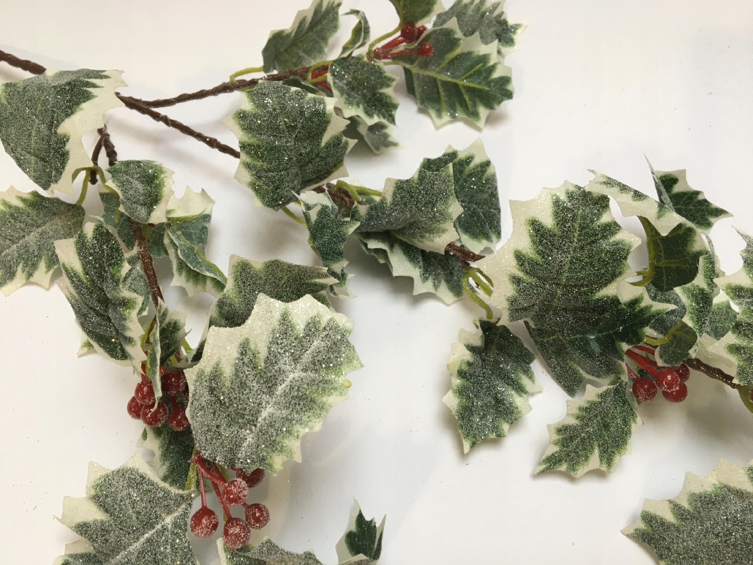 GAŁĄZKA SZTUCZNA jak żywa ośnieżona brokat OSTROKRZEW z owocami DEKORACJA