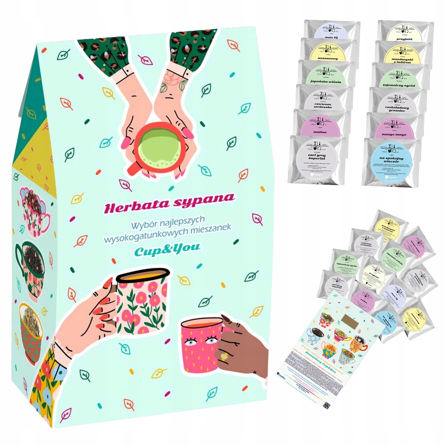 Herbaciany zestaw upominkowy 12 najlepszych smaków BESTSELLERY CUP&YOU - herbaty sypane liściaste na prezent upominek dla kobiety faceta mężczyzny
