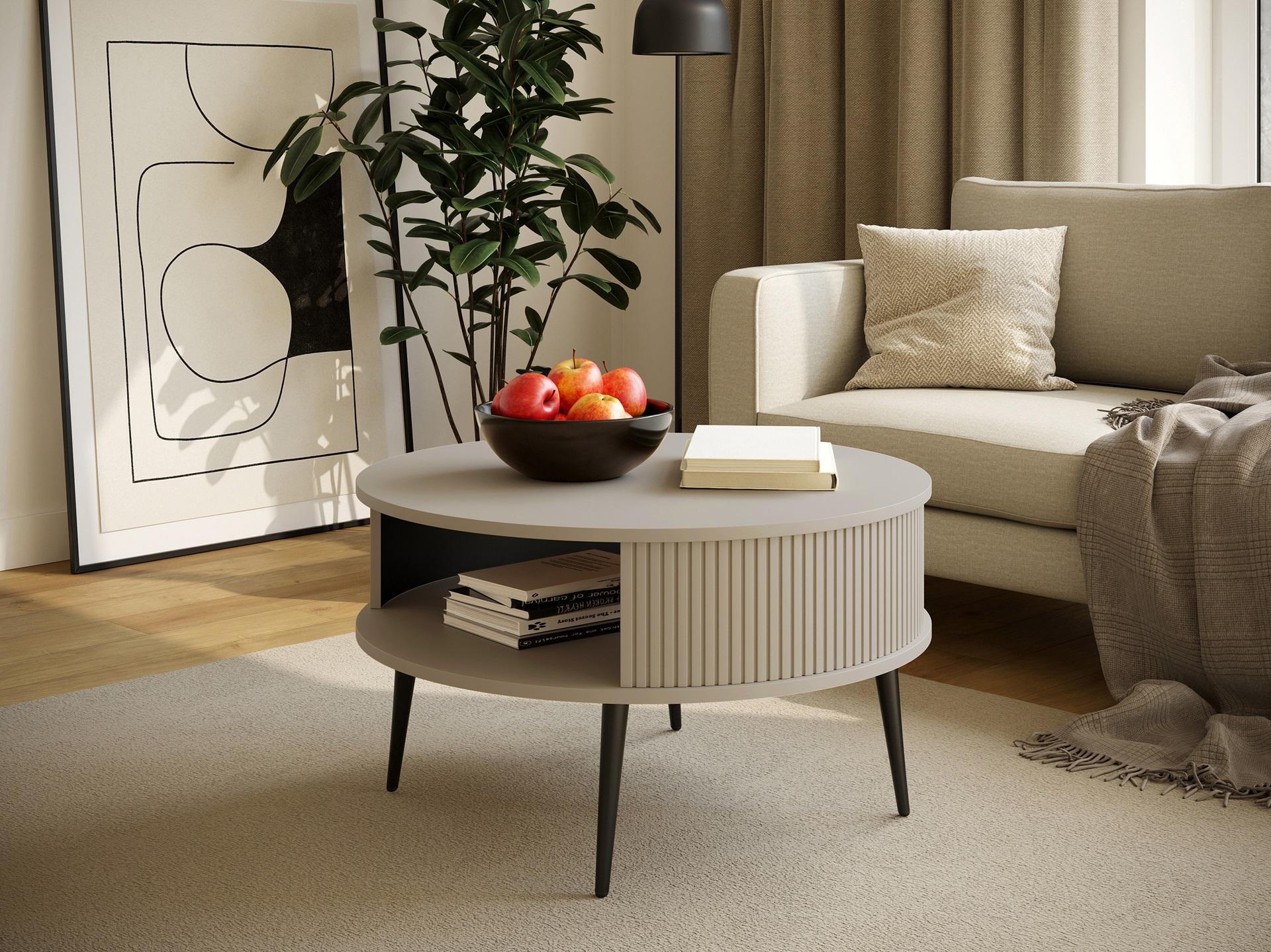 Japandi Stolik Kawowy Okrągły KASZMIR Lamele 76 cm VERLO Stolik do Salonu