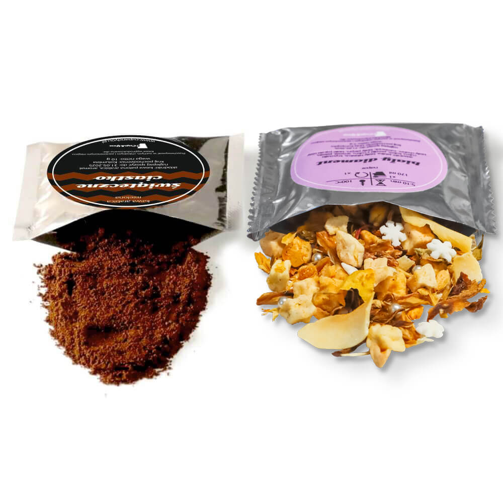Każda saszetka jest szczelnie zapakowana, dzięki czemu herbata i kawa pozostaje świeża przez wiele miesięcy – aromat uwalnia się dopiero po otwarciu.