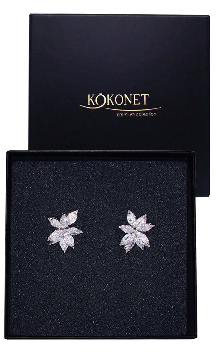 Kolczyki kwiatowe przy uchu z cyrkoniami listkami SREBRNE krótkie ślubne