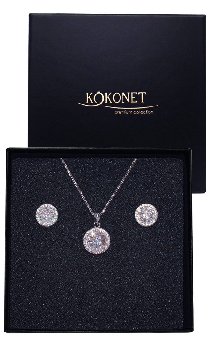KOLCZYKI naszyjnik srebrny okrągły klasyczny blask w pudełku ślubny