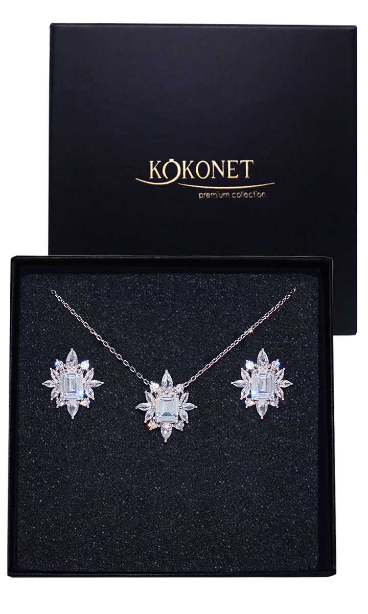 Kolczyki naszyjnik zestaw ślubny old money ROZETA elegancka srebrny