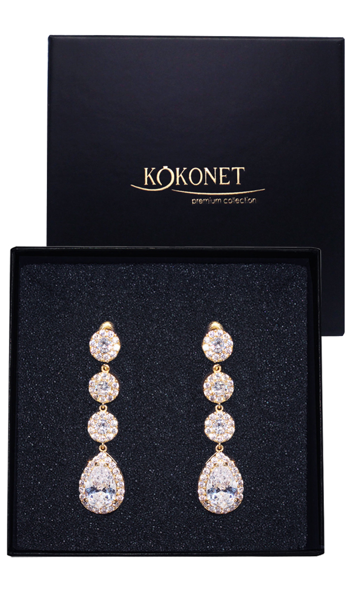 Kolczyki ślubne długie ślub złote POTRÓJNE łezki AAA